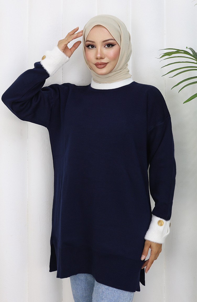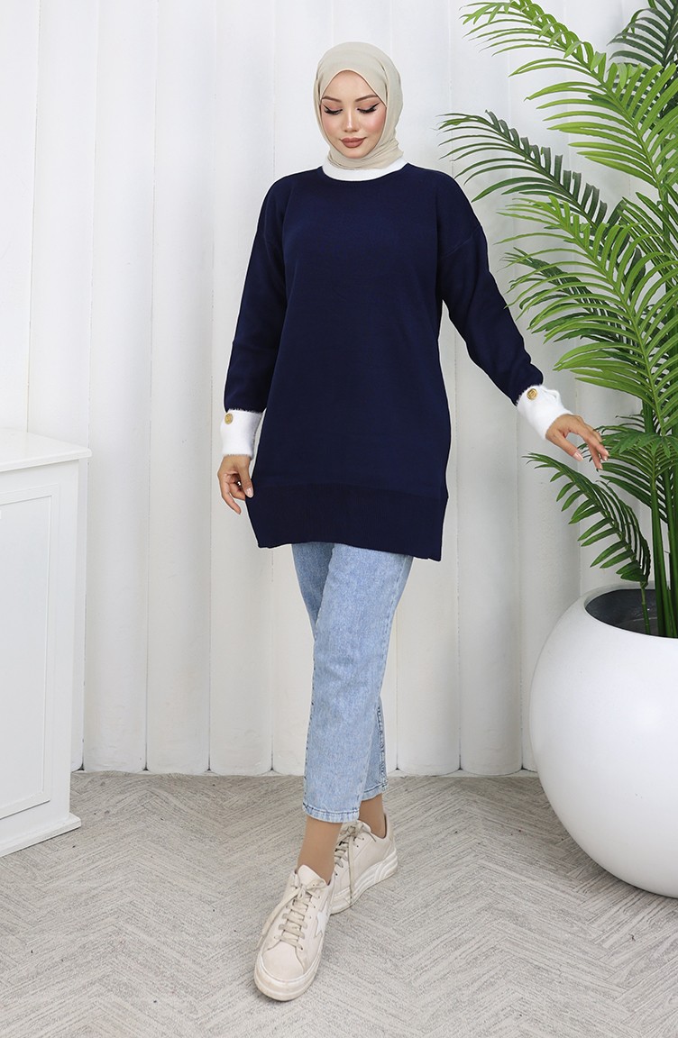 Knitted Tunic With Button Detail On The Sleeve 3000-05 Navy Blue 3000-05