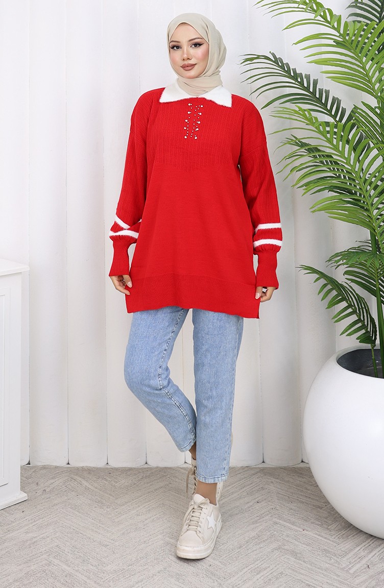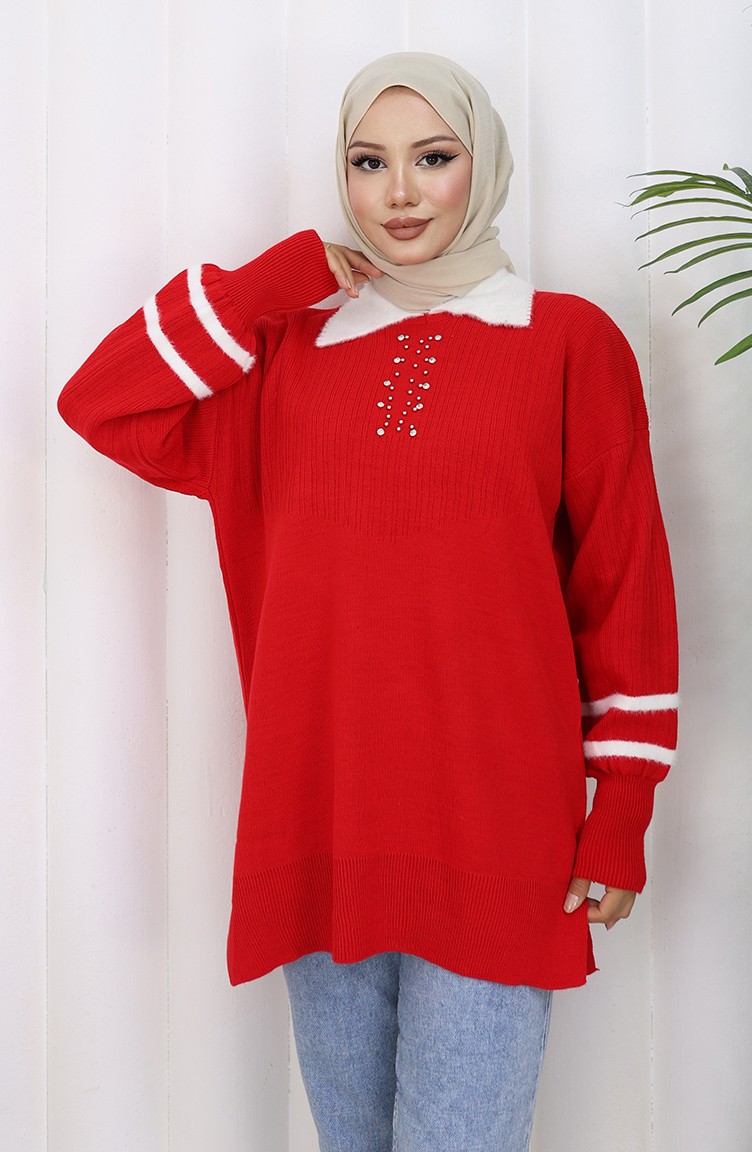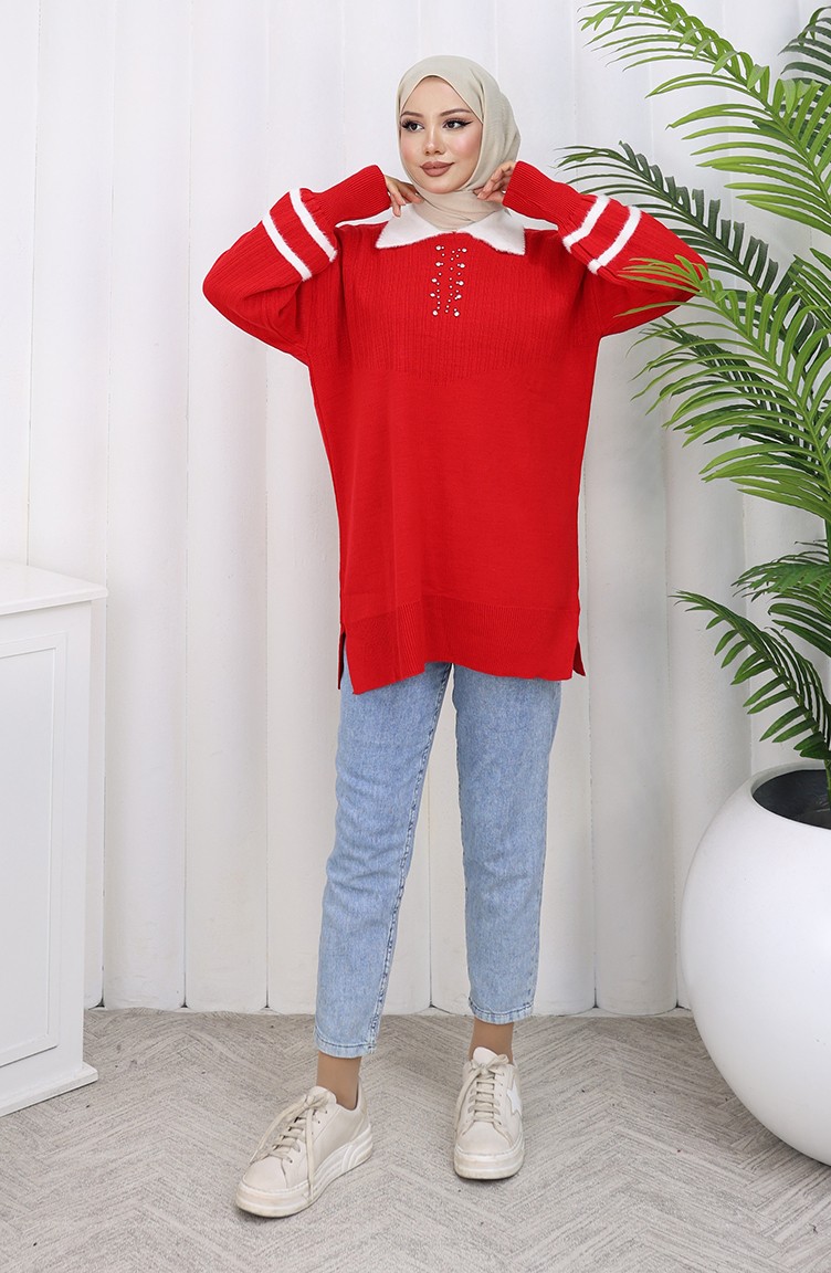 Knitwear Balloon Sleeve Collar Tunic 3007-08 Red 3007-08