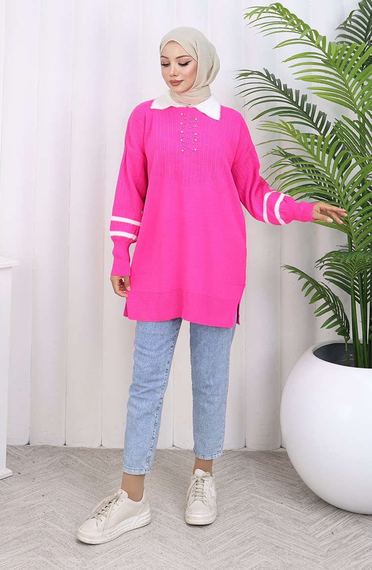 Knitwear Balloon Sleeve Collar Tunic 3007-12 Fuchsia 3007-12