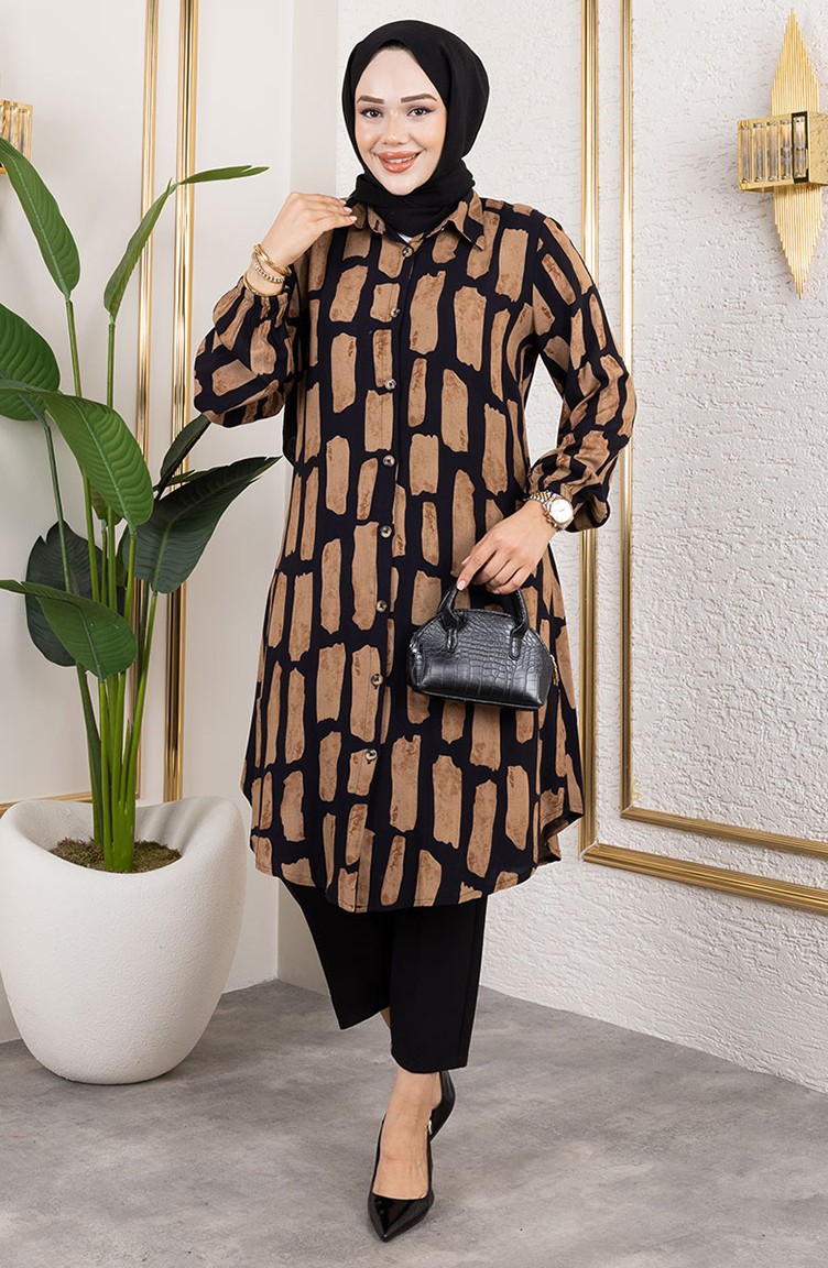 Checkered Viscose Tunic 0176-02 Brown 0176-02