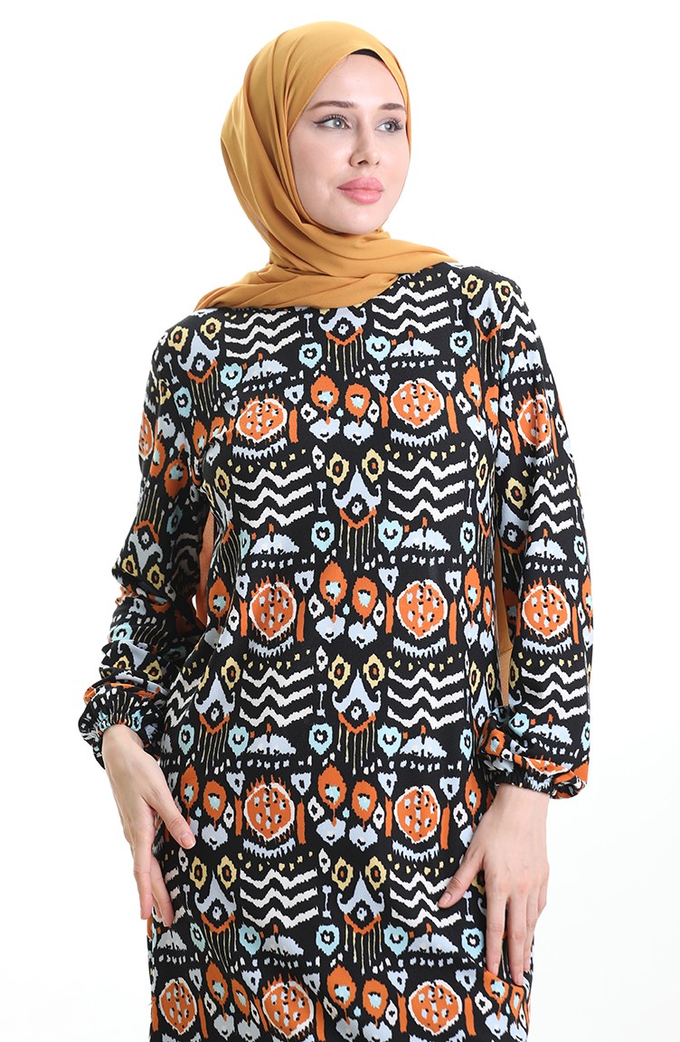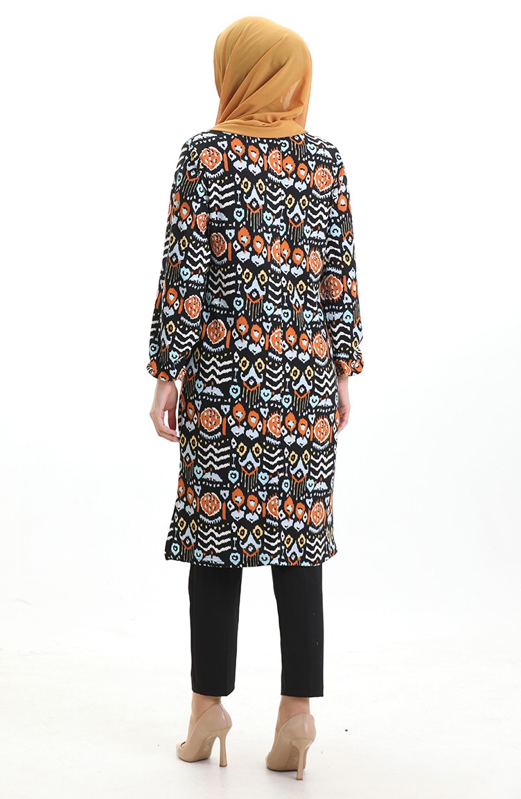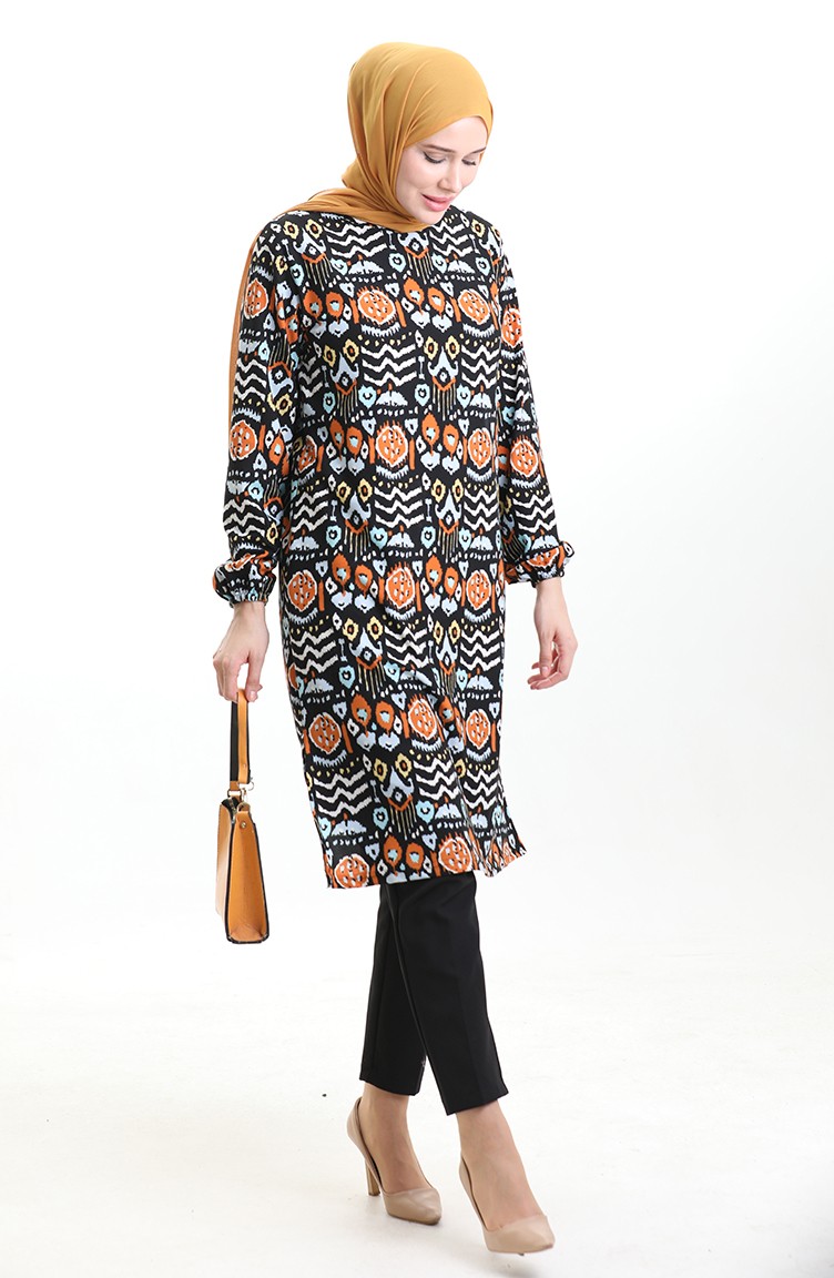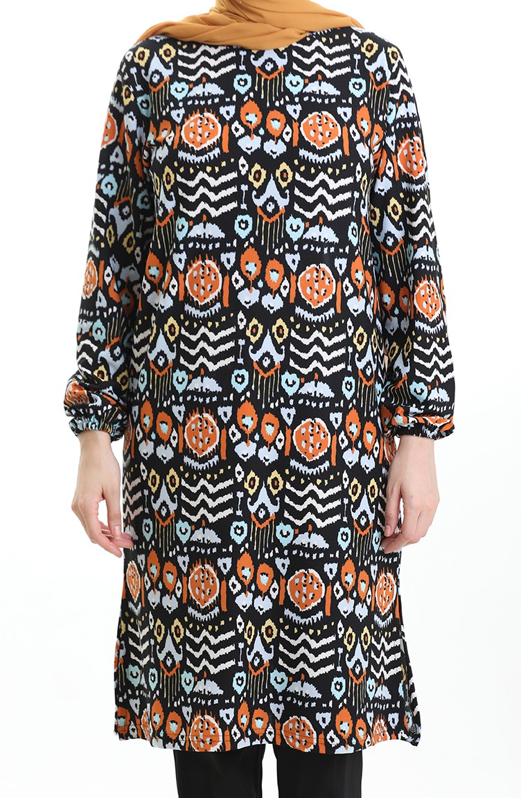 Digitally Printed Slit Detailed Tunic 1005-01 Black Brick 1005-01