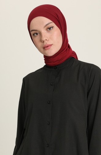 Black color is used. Polyester fabric often prevents wrinkling. It has a plain appearance. The product is used unlined. Long sleeve product. Tippet collar is prefered. Designed for summer use. The size worn by the model, is the one on the image.