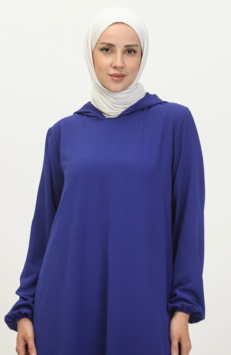 Saxon blue color is used. Polyester fabric often prevents wrinkling. It has a plain appearance. It's a hooded product. Plus size option available.