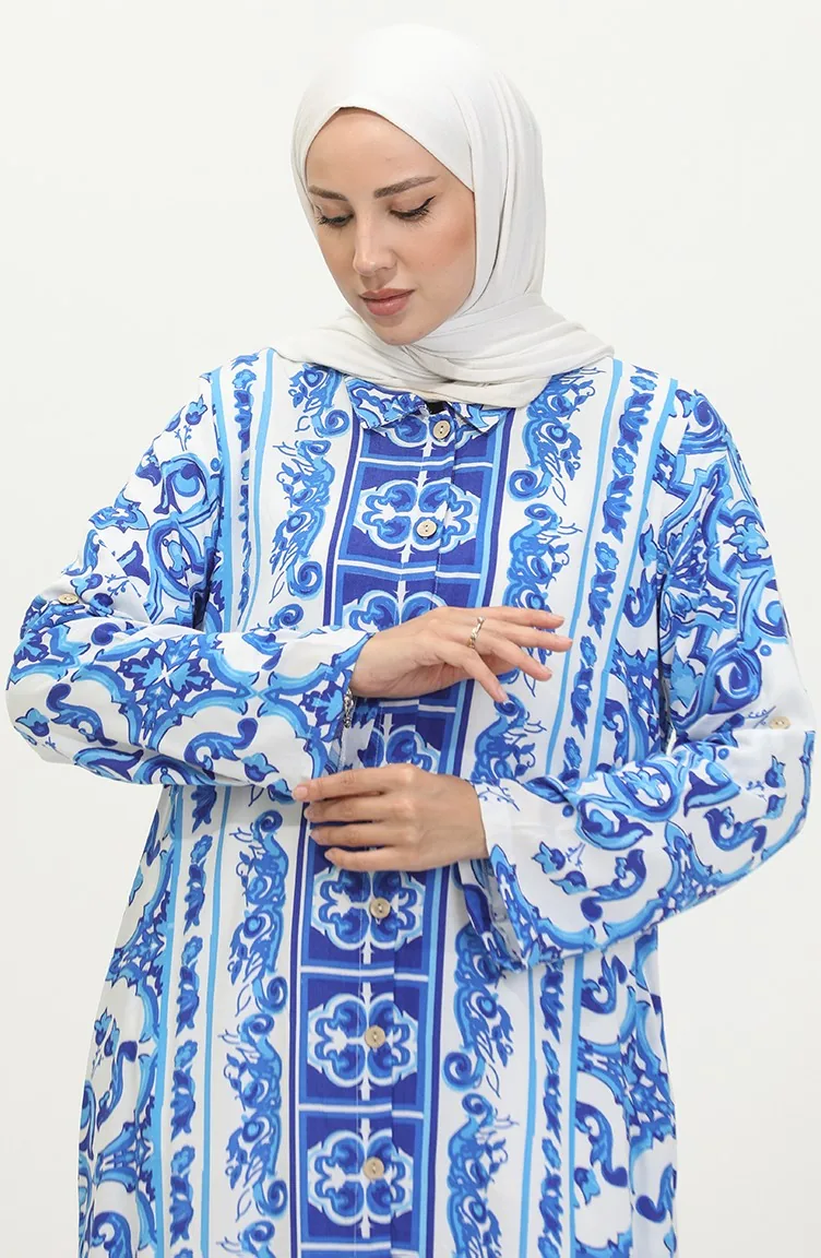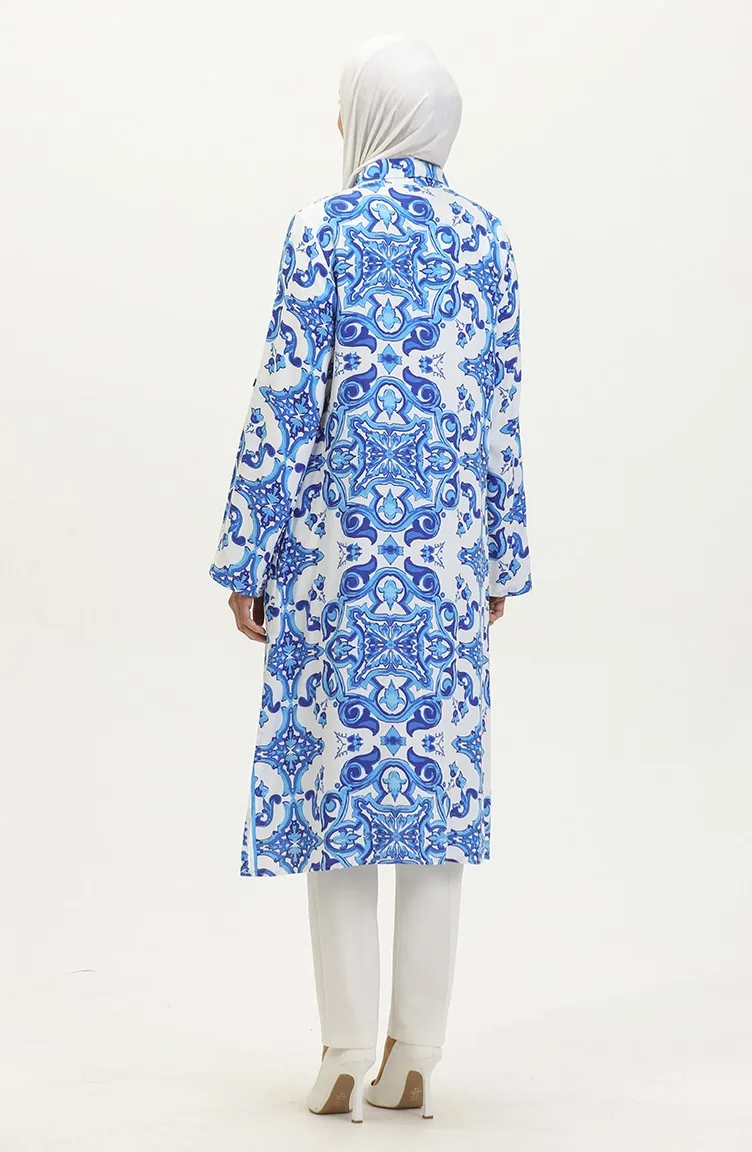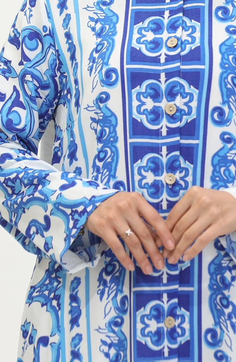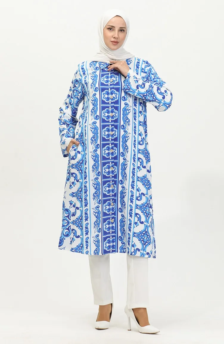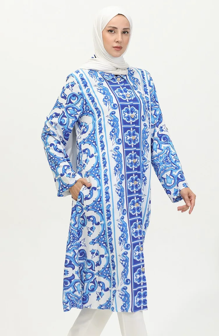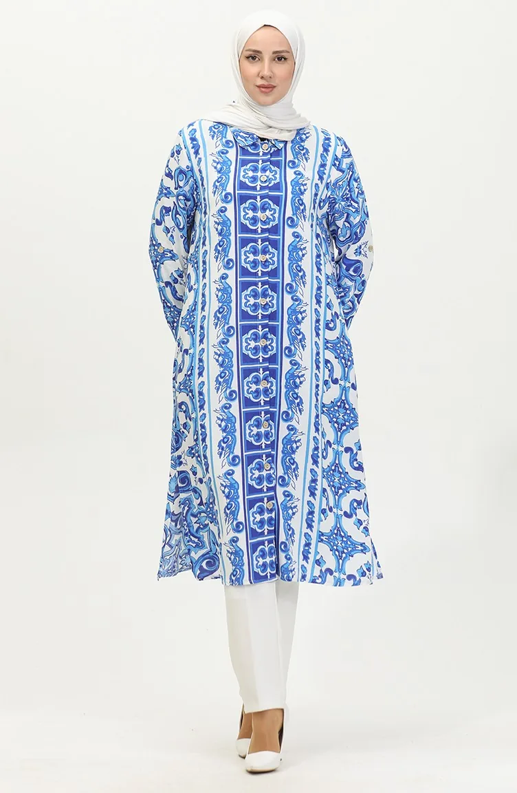 Viscose Patterned Buttoned Tunic 2028A-01 Saxe White 2028A-01