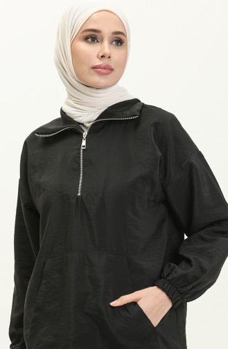 Black color is used. The cotton fabric has an absorbent texture. It has a plain appearance. The product is used unlined. Long sleeve product. Suitable for 4 seasons. Plus size option available.