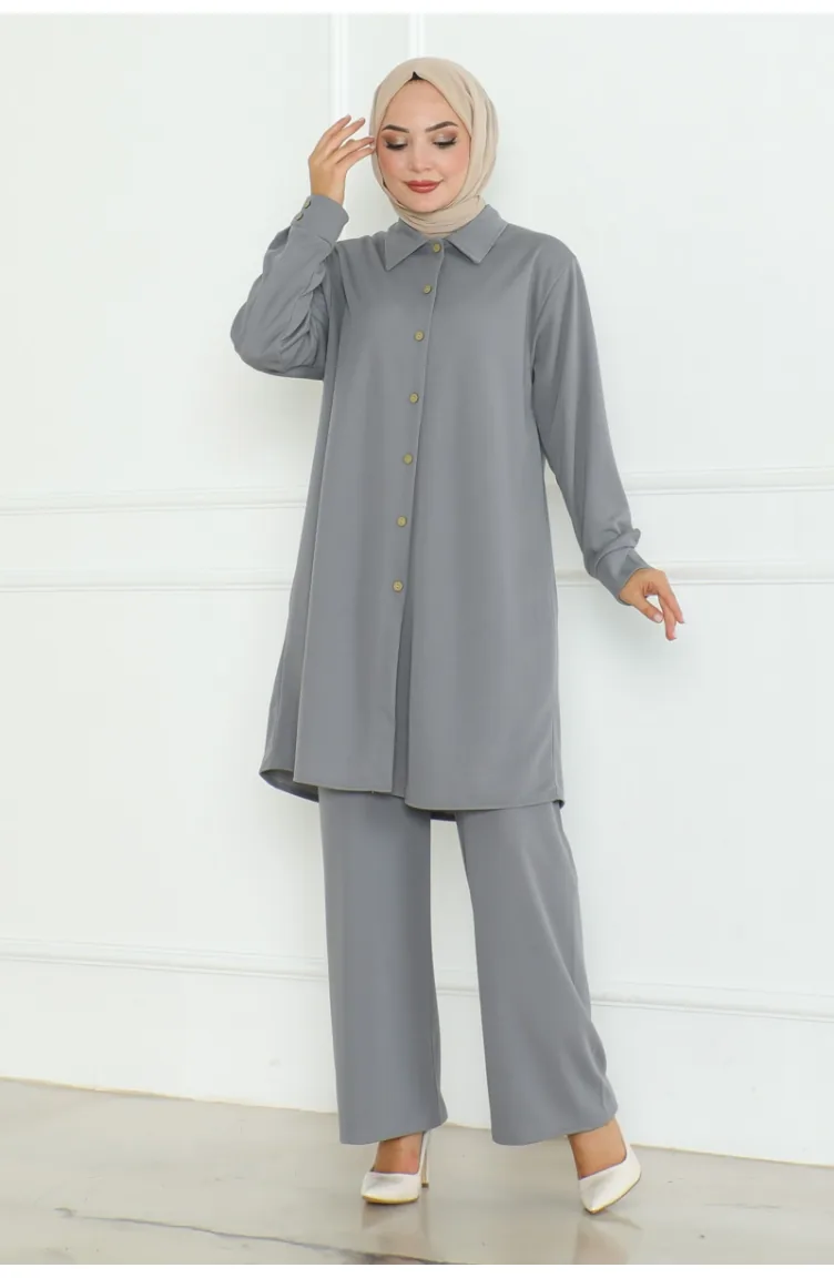 Plus Size Shirt Suit 2093-05 Gray 2093-05