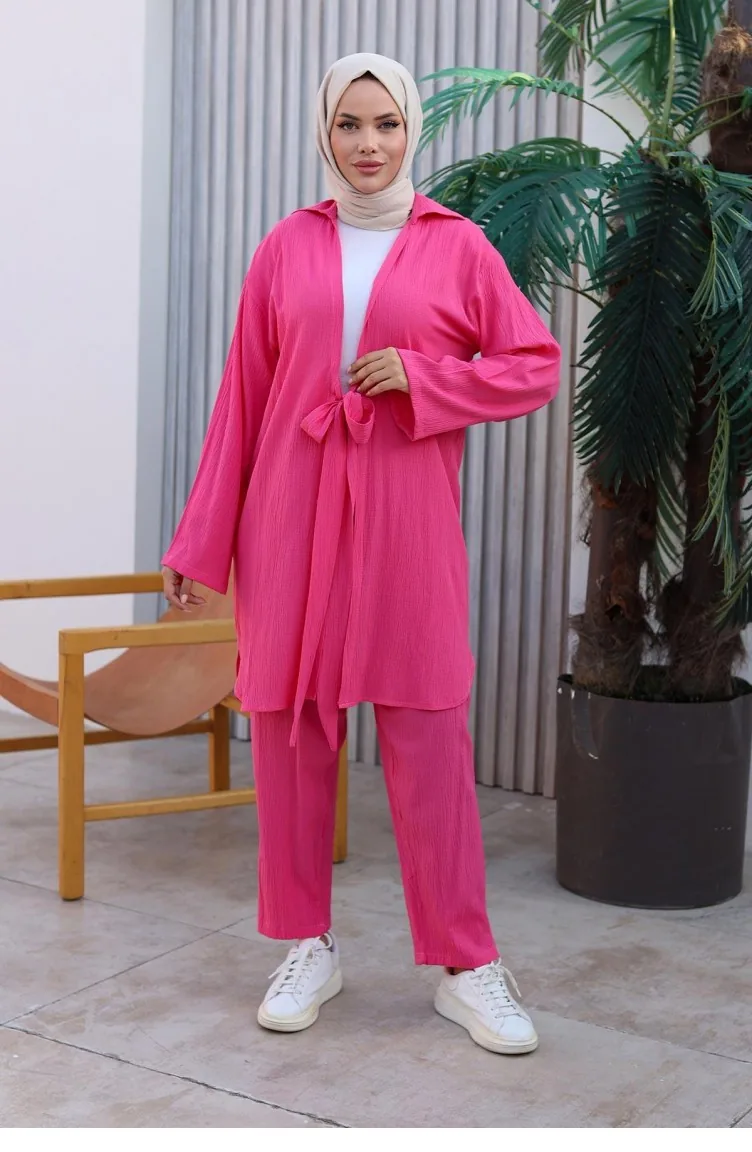 Tie Detailed Kimono Suit Fuchsia 1225 612