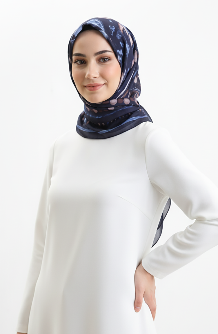 Amber Patterned Scarf 70326-07 Navy Blue Mink 70326-07