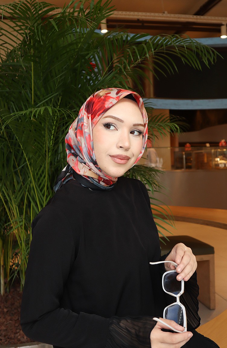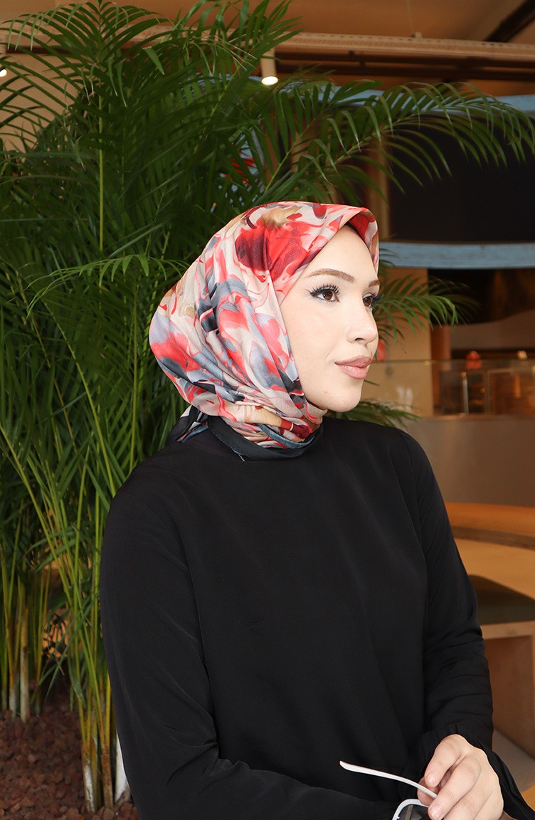 Cotton Patterned Cocoon Scarf 70335-05 Black Pomegranate Flower 70335-05