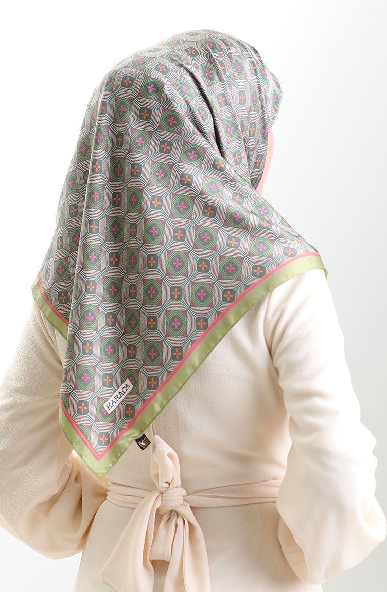 Karaca Geometric Patterned Rayon Scarf 82021-08 Green Pink 82021-08