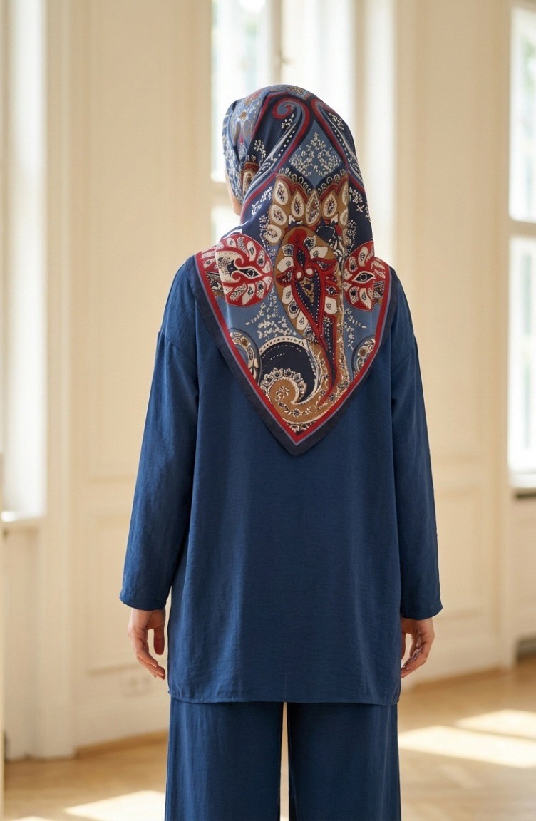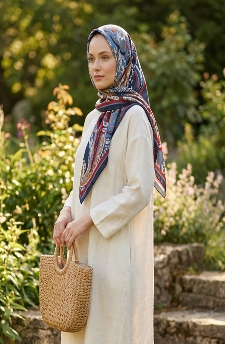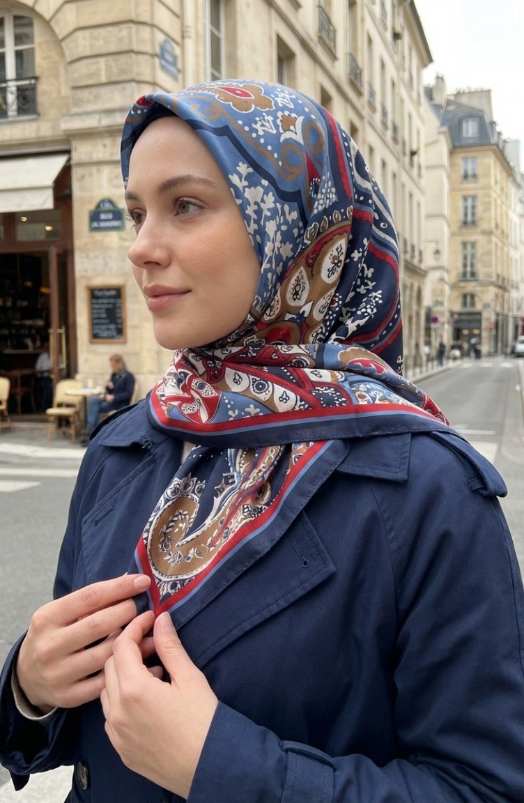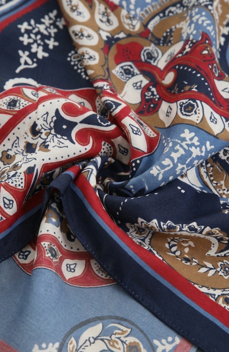 Karaca Patterned Cupra Scarf 81090-01 Navy Burgundy 81090-01