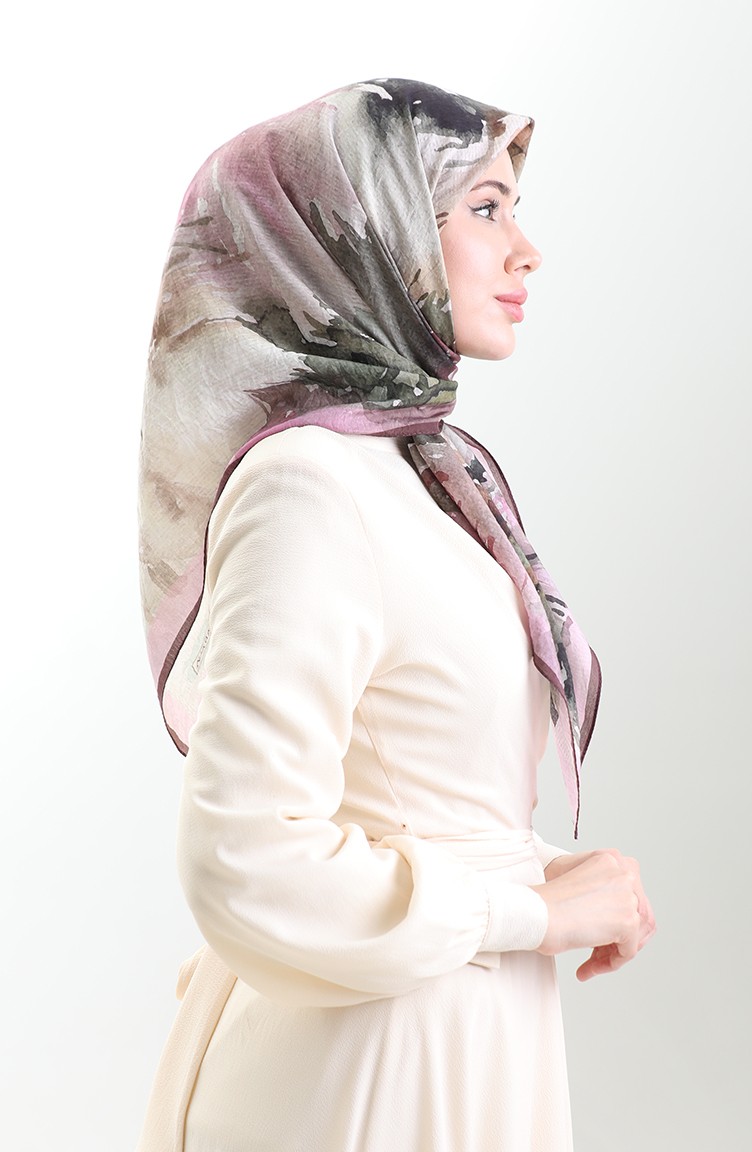 Karaca Patterned Natural Fiber Scarf 82016-05 Brown Pink 82016-05
