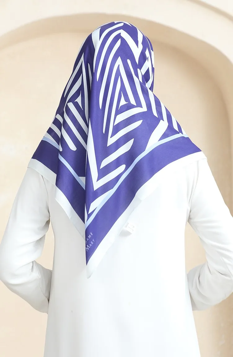 Soft Cotton Scarf 19092-04 Navy Blue Ecru 19092-04