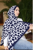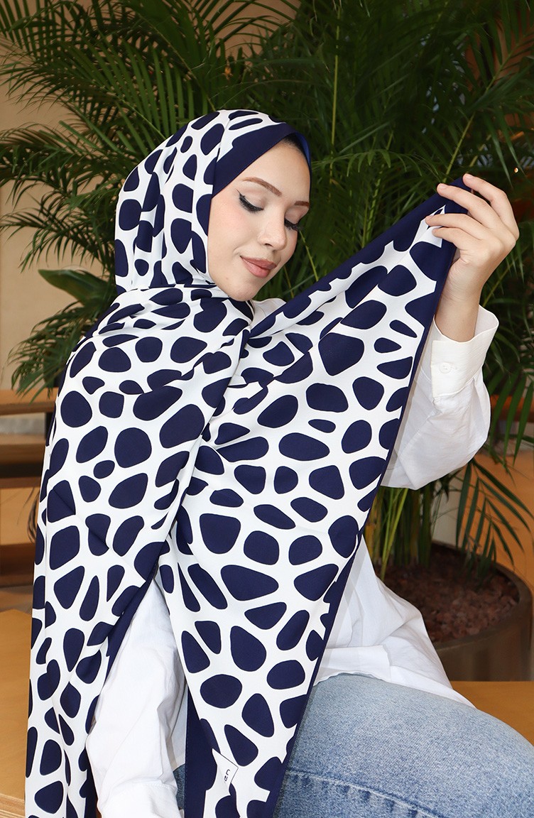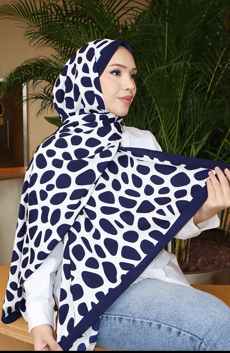 Geometric Patterned Capri Shawl 70342-02 Navy Blue Ecru 70342-02