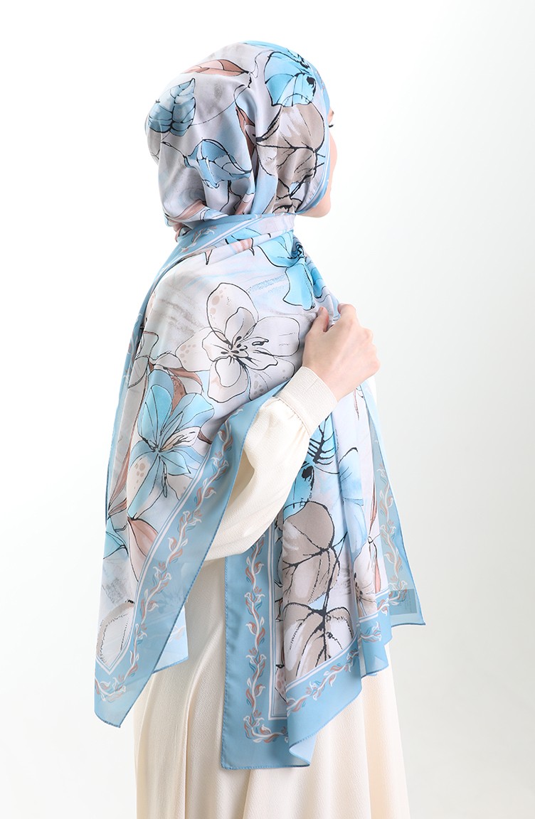 Hanzade French Silk Shawl 70330-02 Blue Brown 70330-02