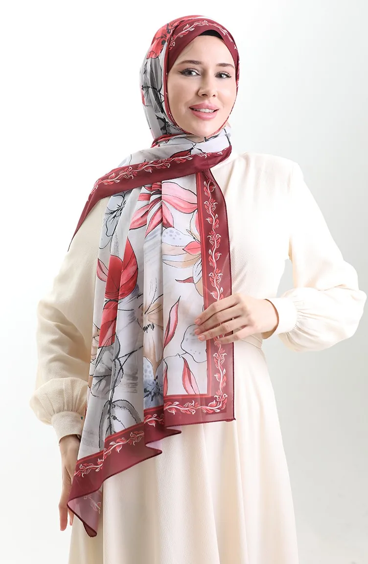 Hanzade French Silk Shawl 70330-10 Claret Red Gray 70330-10
