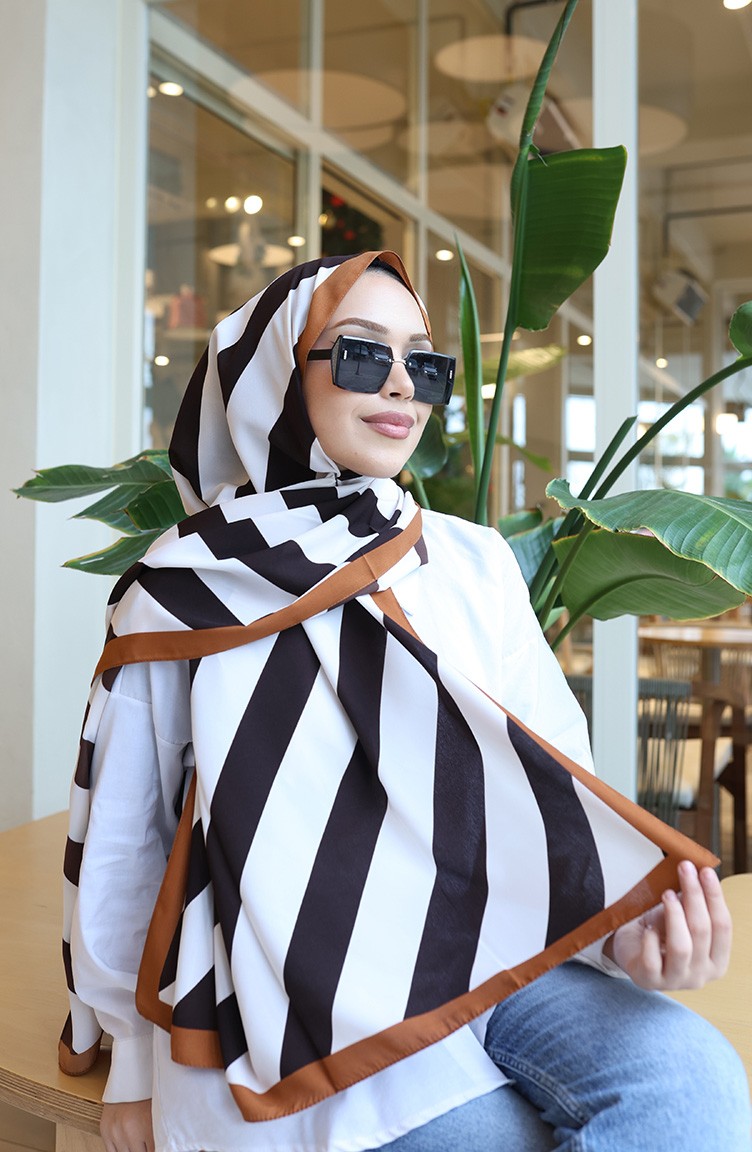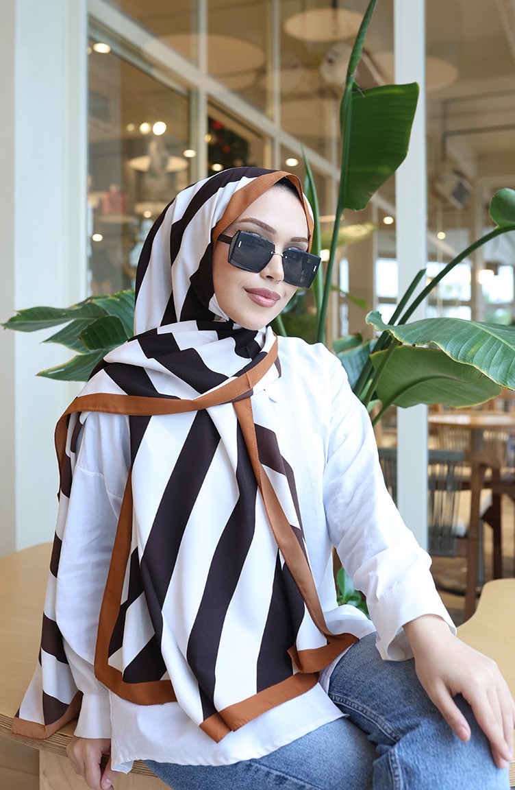 Patterned Shawl 70338-08 Brown Ecru 70338-08