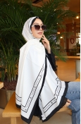 Stripe Detailed Shawl 70340-01 Black Ecru 70340-01