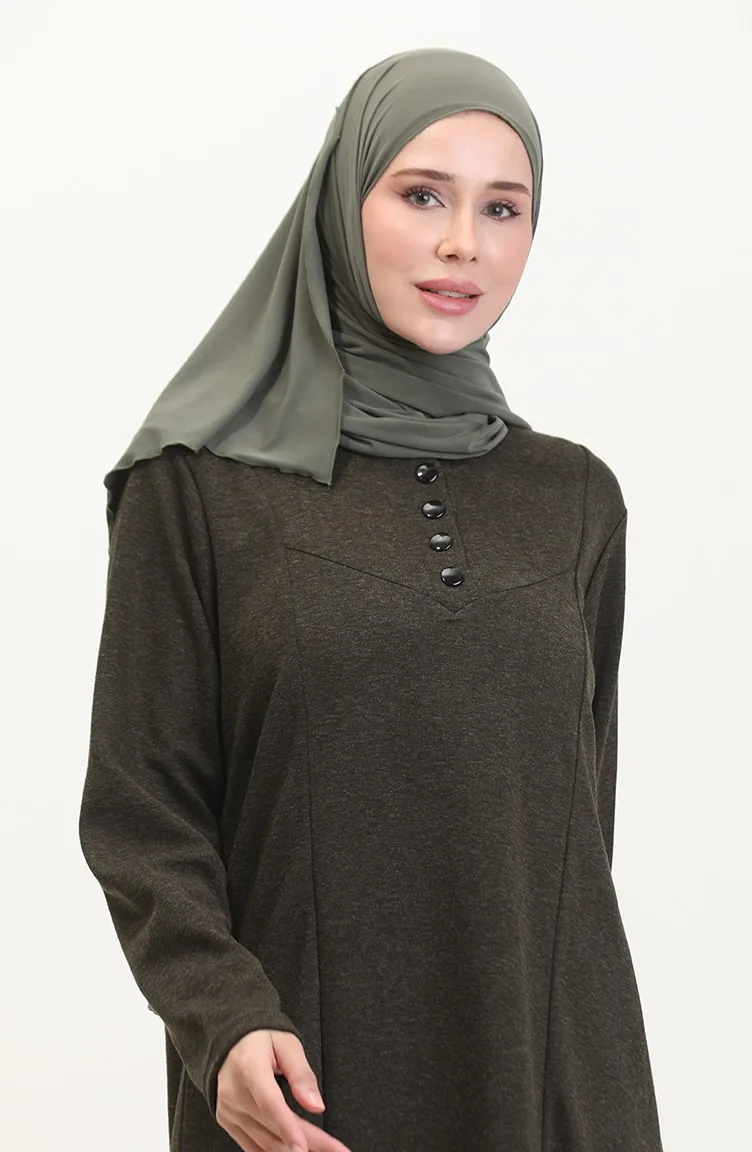 Plus Size Button Detail Dress 0532-02 Khaki 0532-02