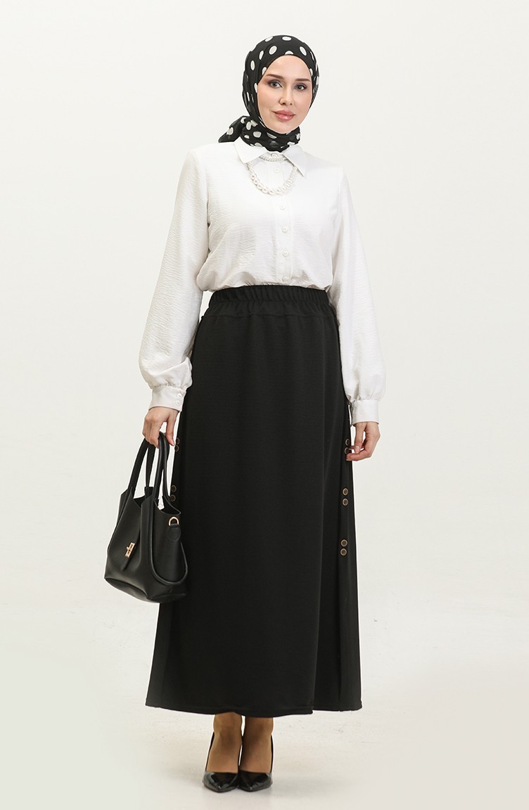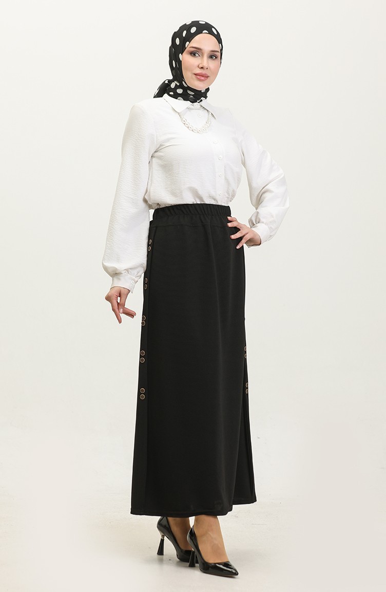 Plus Size Button Detailed Skirt 4206-06 Black 4206-06