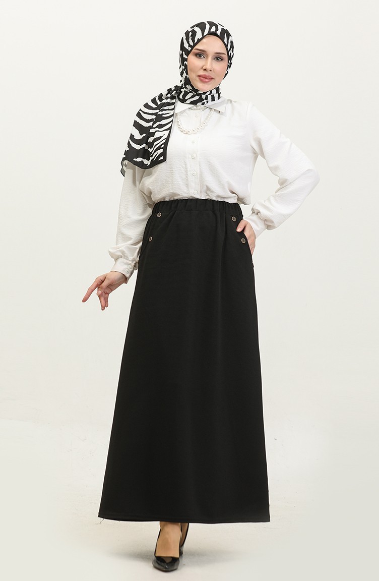 Plus Size Button Detailed Skirt 4208-01 Black 4208-01