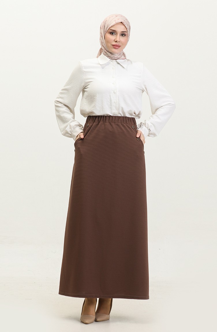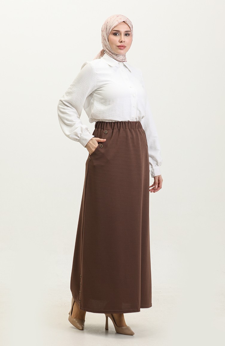 Plus Size Button Detailed Skirt 4208-04 Mink 4208-04