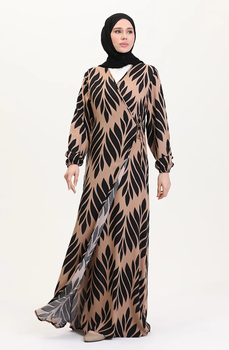 Viscose is a type of synthetic fabric and is convenient to use. Designed with patterned fabric. The product has laces for ease of use. It's made of elastic sleeves. Suitable for 4 seasons. The size worn by the model, is the one on the image.