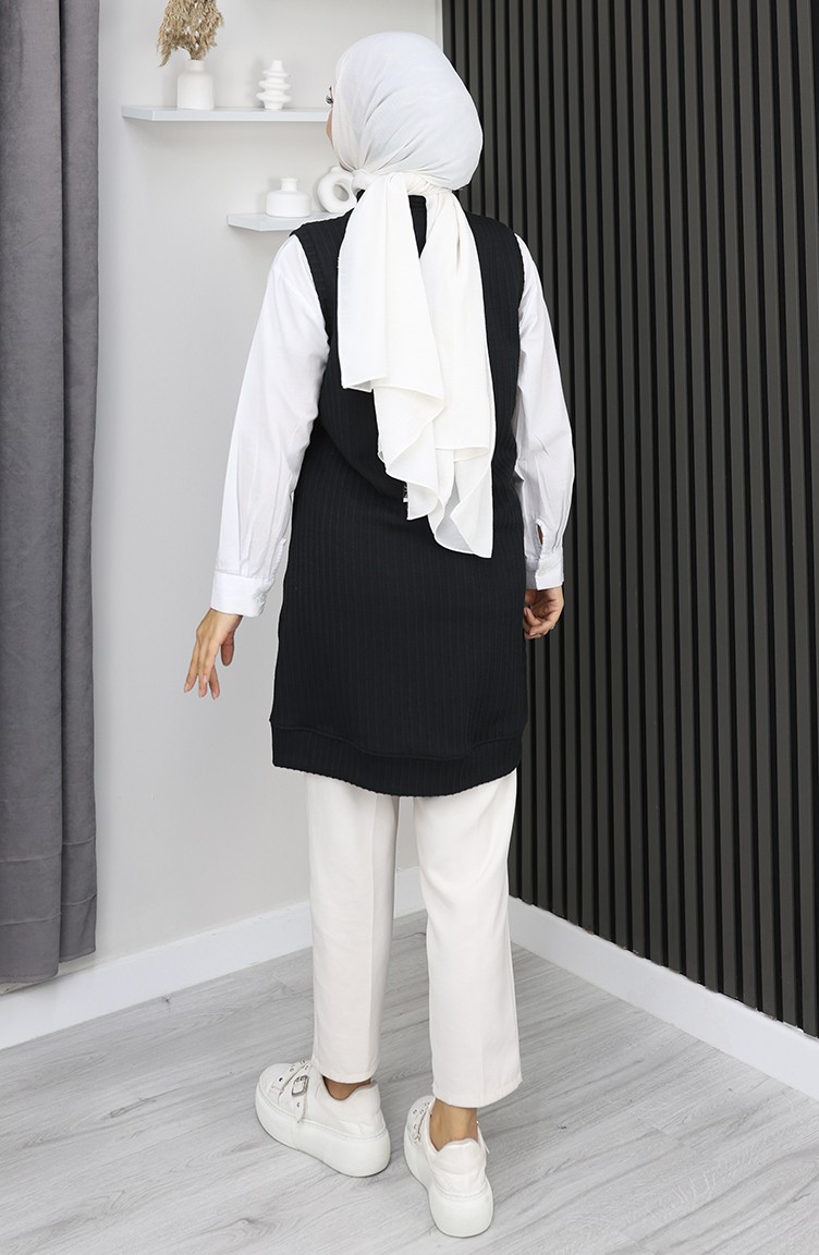 Striped Quilted Sleeveless Vest 5101-01 Black 5101-01