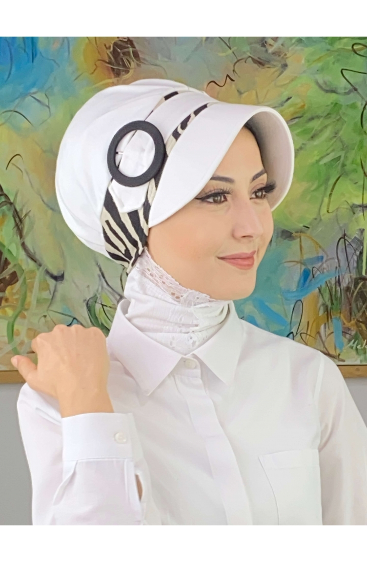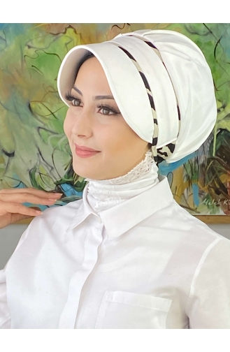 Nazlı Model Buckle Large Milk Brown Pullover Hijab Hat SBT26SPK27-07 White Black 26SPK27-07