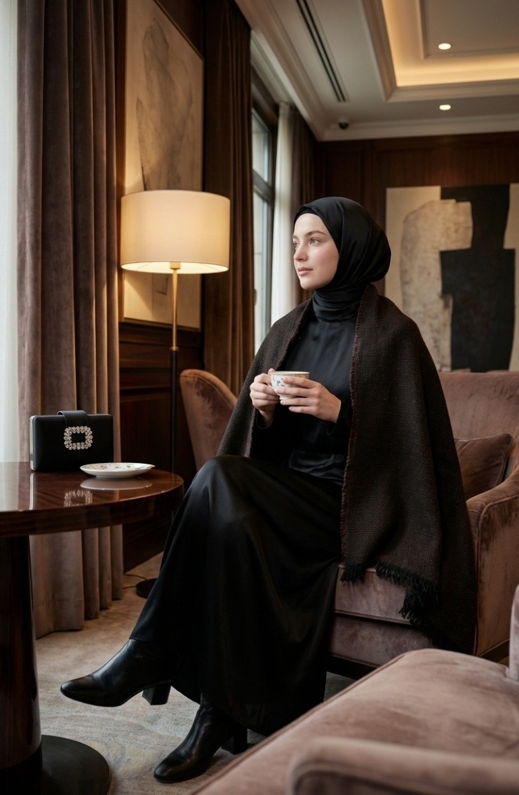 Black color is used. The cotton fabric has an absorbent texture. Designed with patterned fabric. Designed from thick fabric. The size worn by the model, is the one on the image.