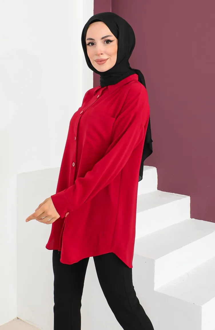Buttoned Crepe Shirt 2007-01 Red 2007-01