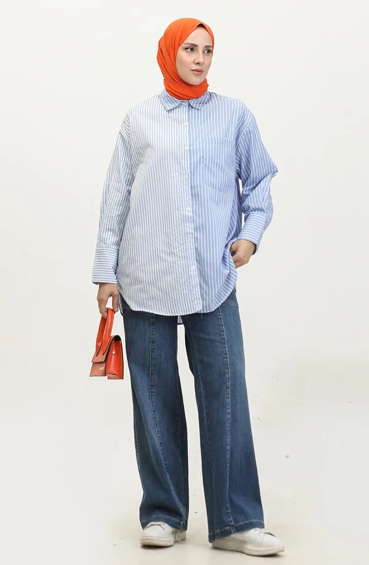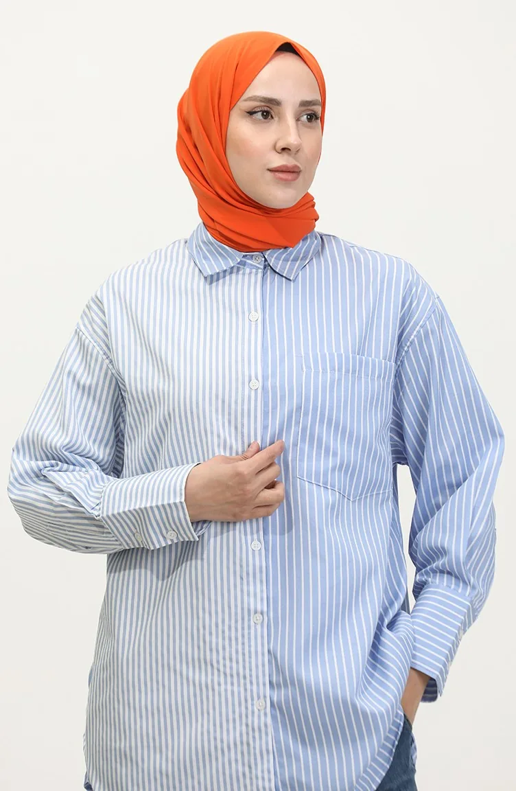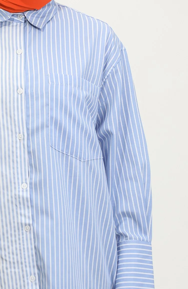 Garnished Striped Shirt 4808-03 Blue 4808-03