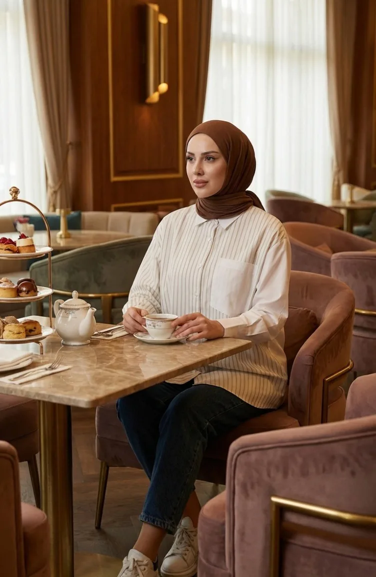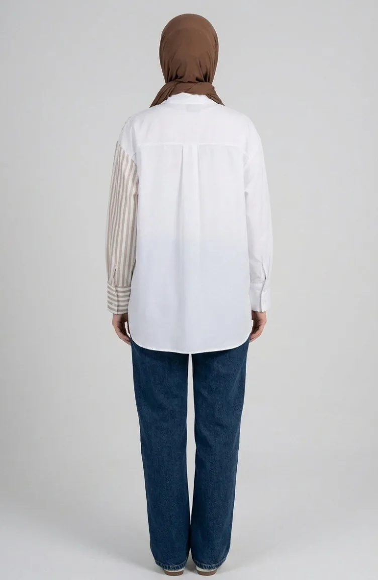 The cotton fabric has an absorbent texture. Designed with a striped fabric. The product is used unlined. Long sleeve product. Suitable for 4 seasons. Plus size option available.