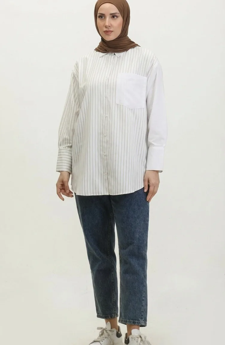 Garnished Striped Shirt 4815-03 Mink 4815-03