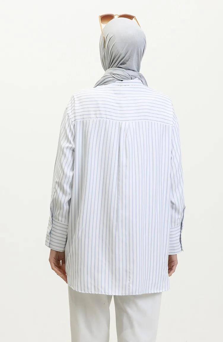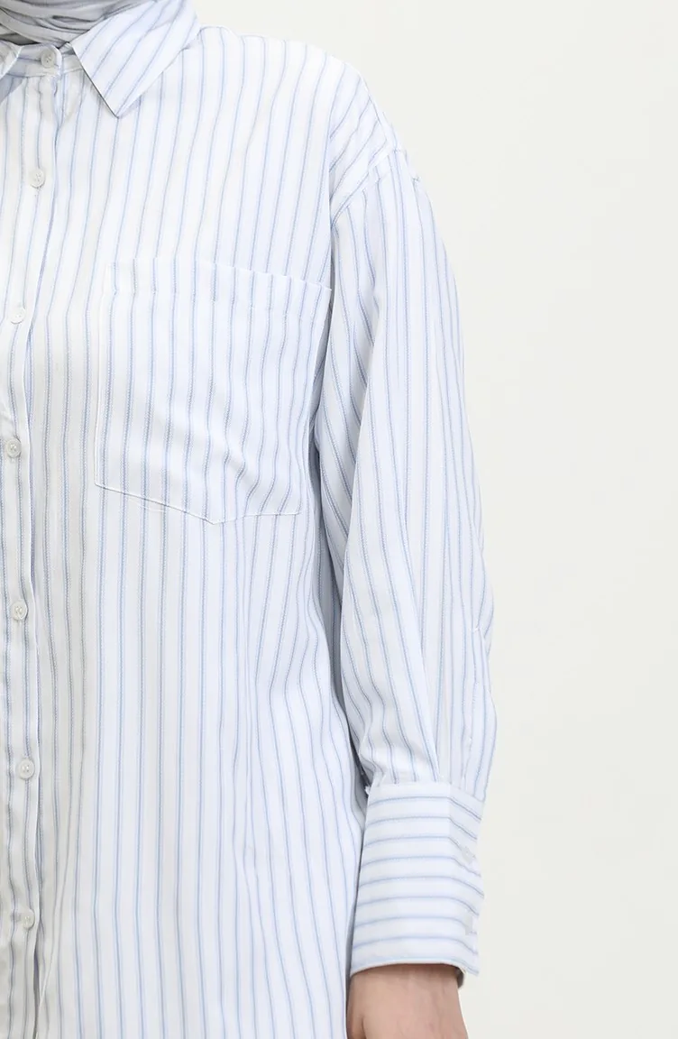 The cotton fabric has an absorbent texture. Designed with a striped fabric. The product is used unlined. Long sleeve product. Suitable for 4 seasons. Plus size option available.