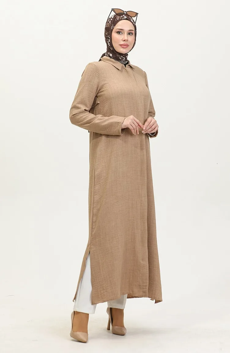 Shirt Collar Abaya 24019-02 Mink 24019-02