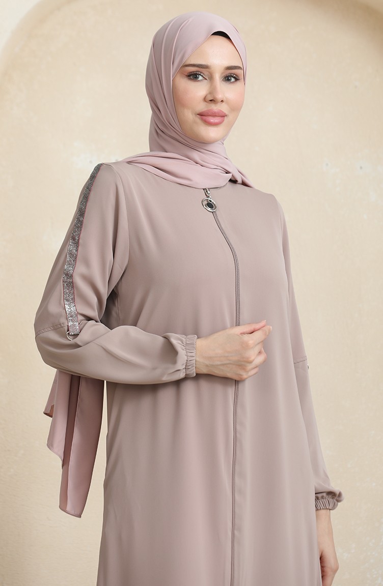 Side Stone Pattern Abaya 0464-08 Mink 0464-08