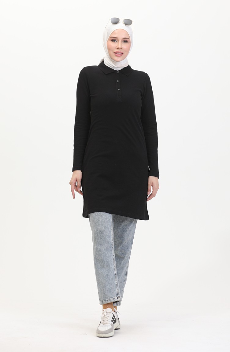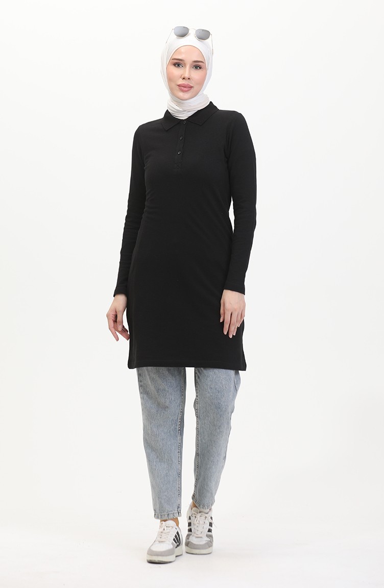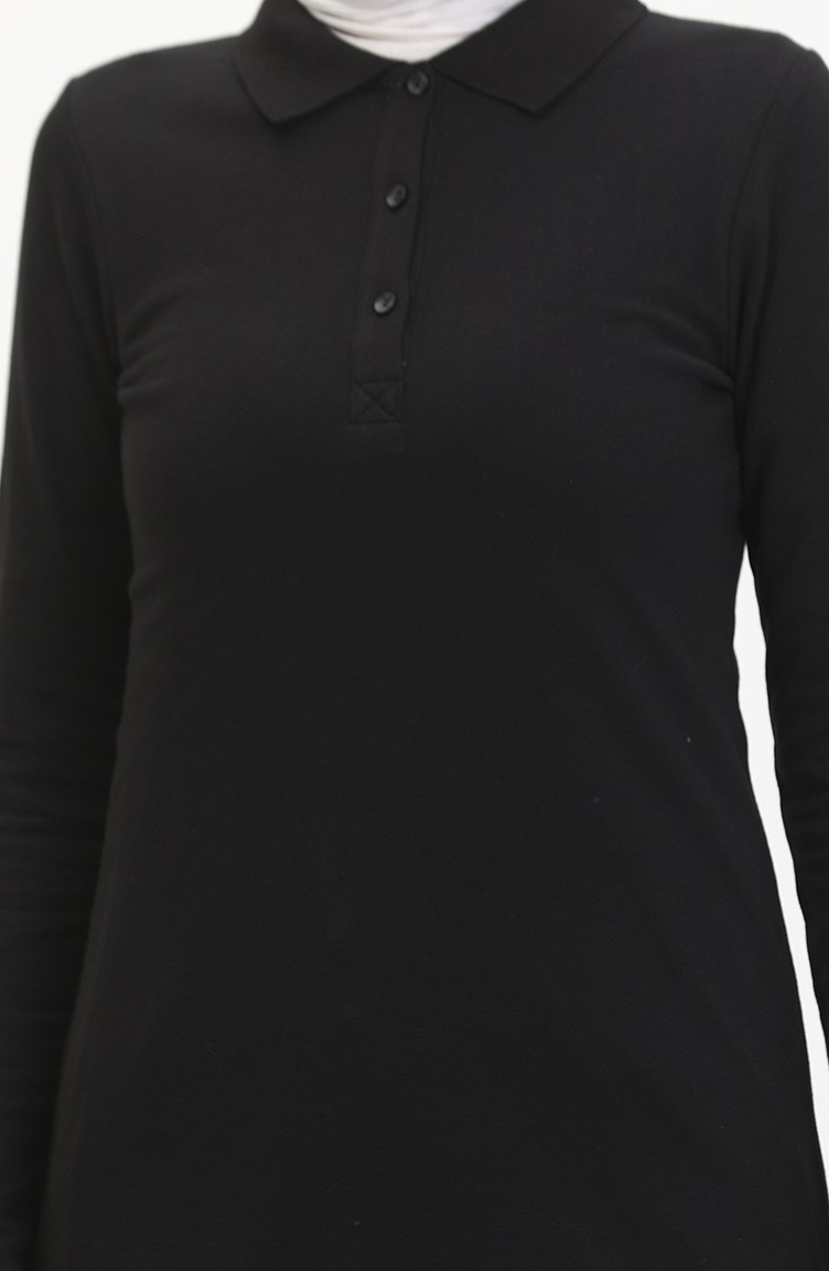 Polo Collar Placket Tunic 5037-02 Black 5037-02