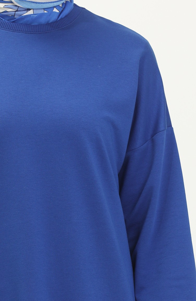 Saxon blue color is used. Viscose is a type of synthetic fabric and is convenient to use. It has a plain appearance. The product is used unlined. Long sleeve product. The Zero collar is preferred for all types of clothing. Suitable for 4 seasons. Spor. Woman. The size worn by the model, is the one on the image.
