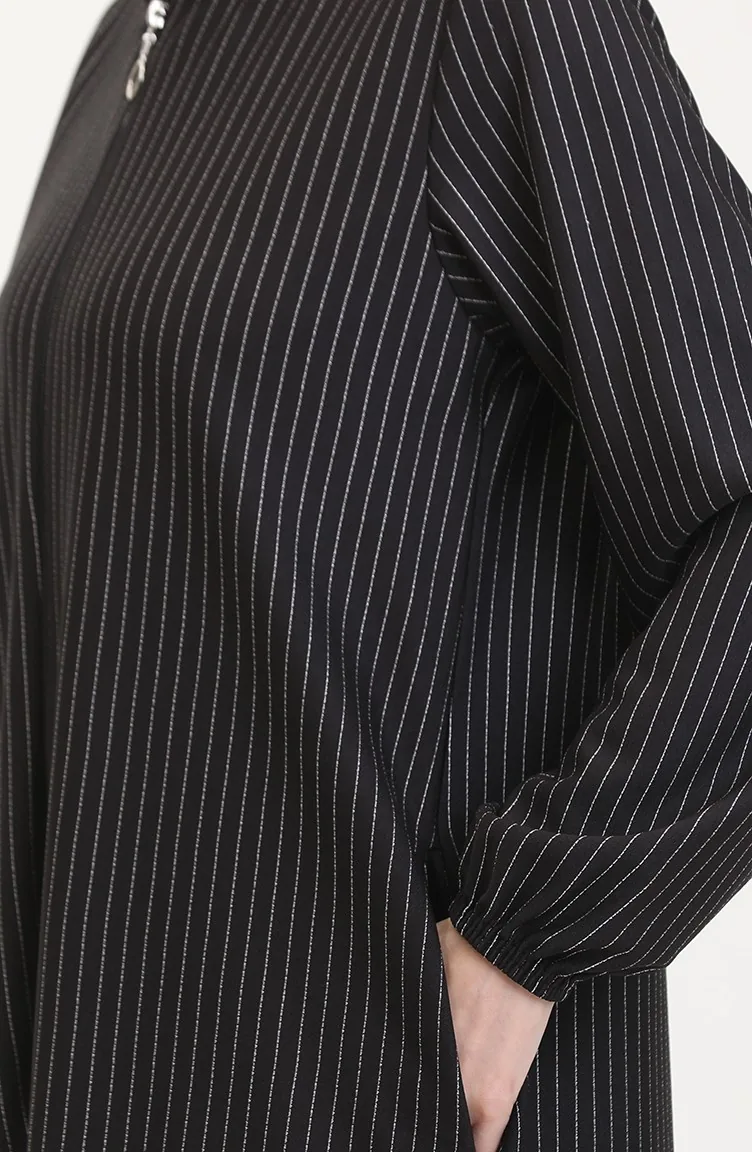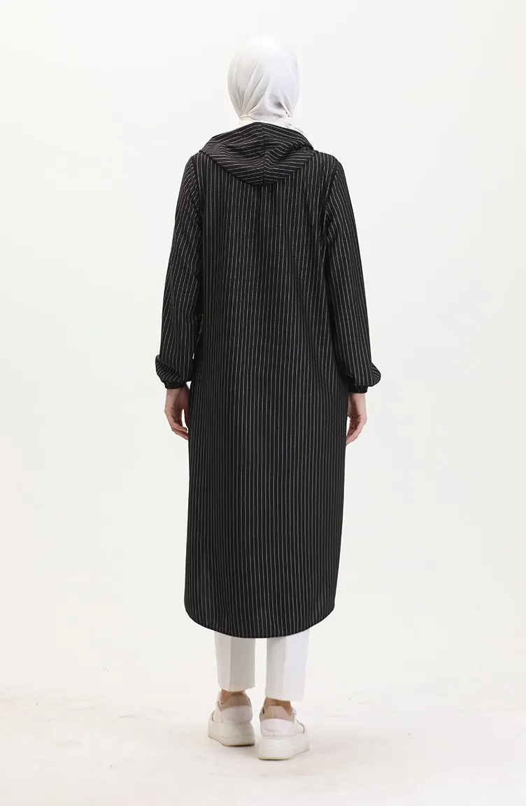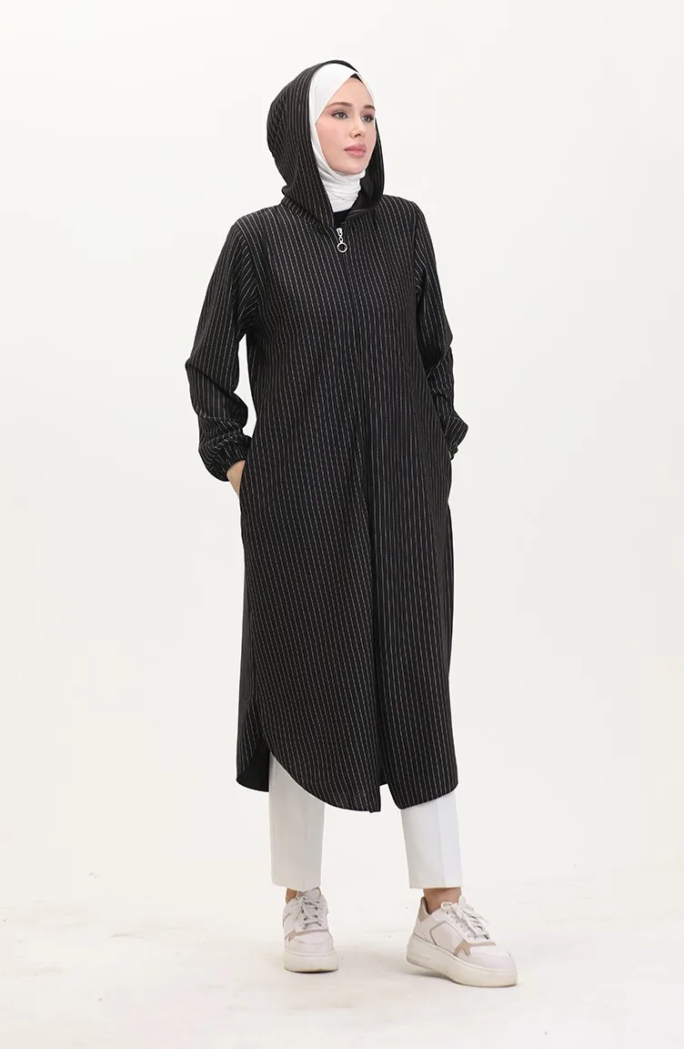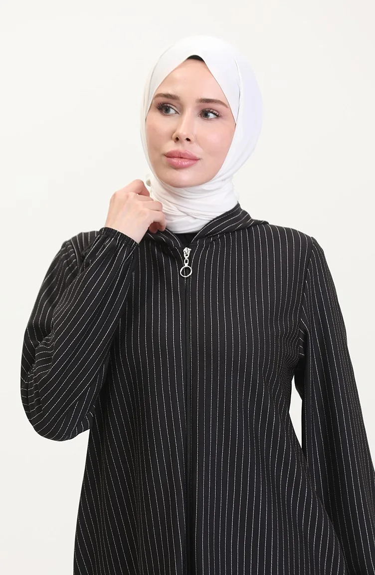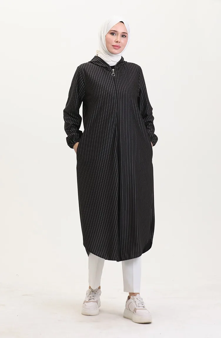 Black color is used. Designed with a striped fabric. For many products, the pocket makes it easier to use. Suitable for 4 seasons. Plus size option available.