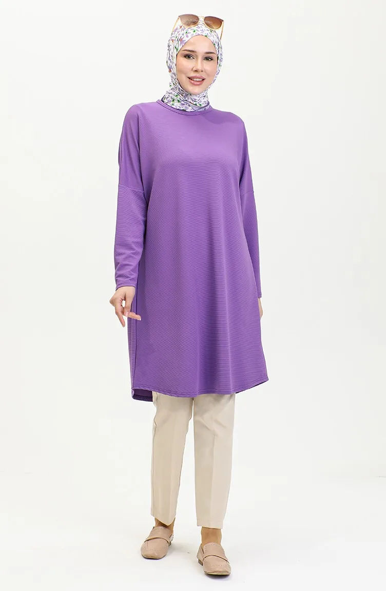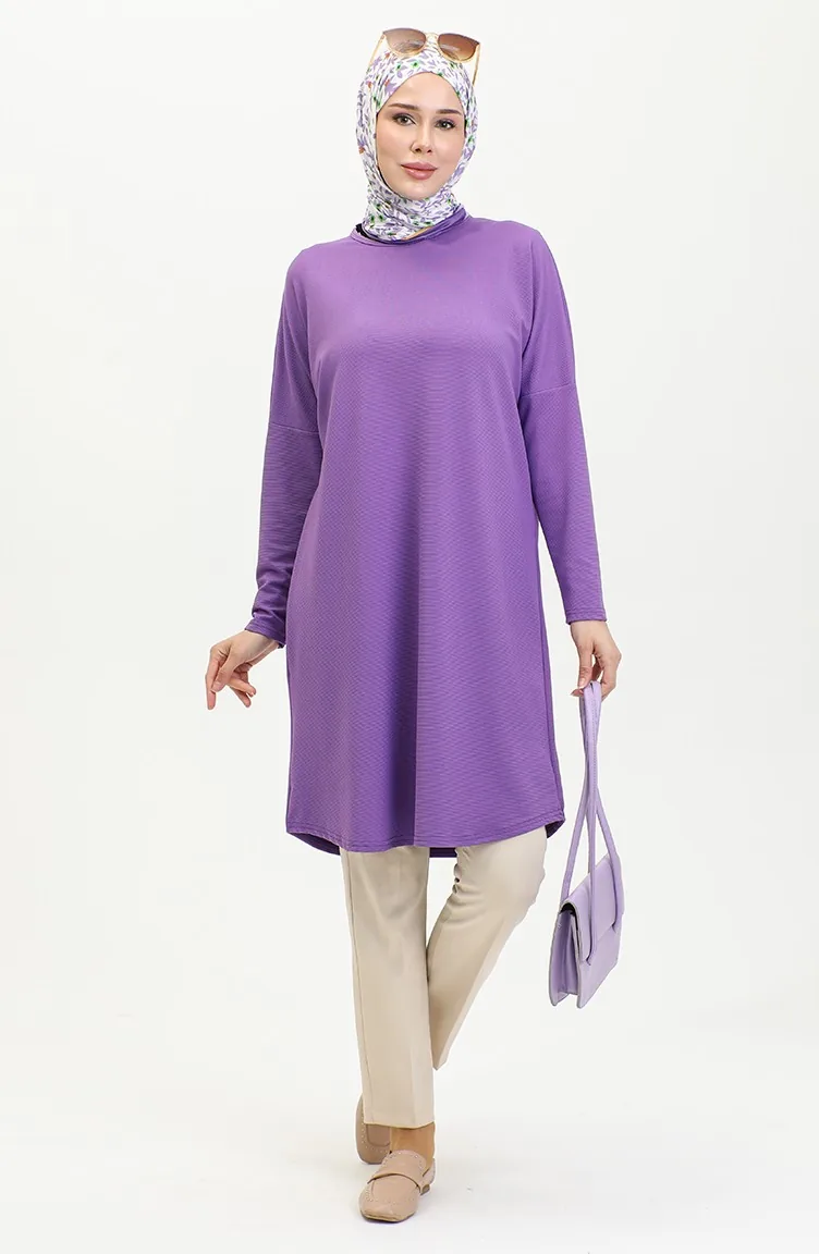 Comfortable Cut Flowy Plain Tunic 8730-02 Purple 8730-02