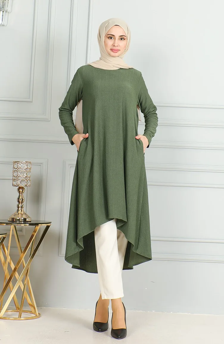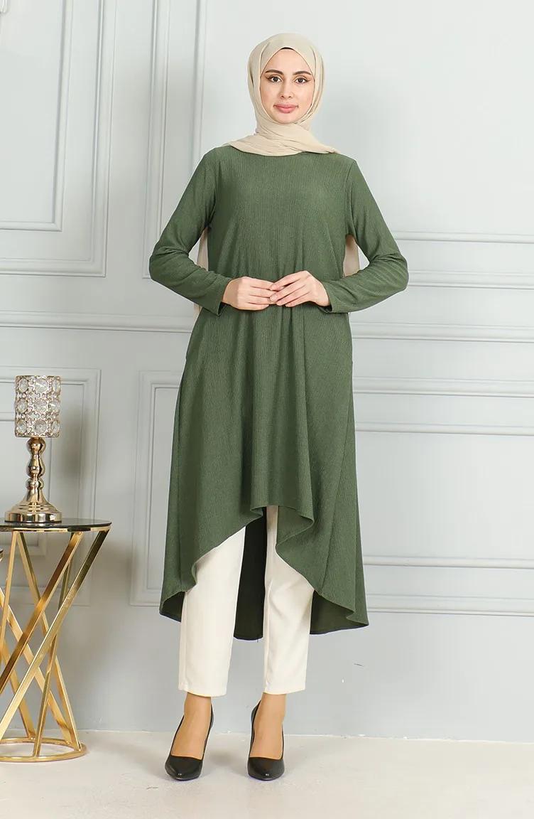 Crepe Fabric Asymmetric Cut Tunic 1032-05 Khaki 1032-05