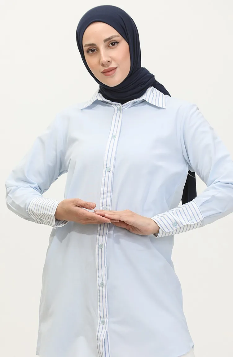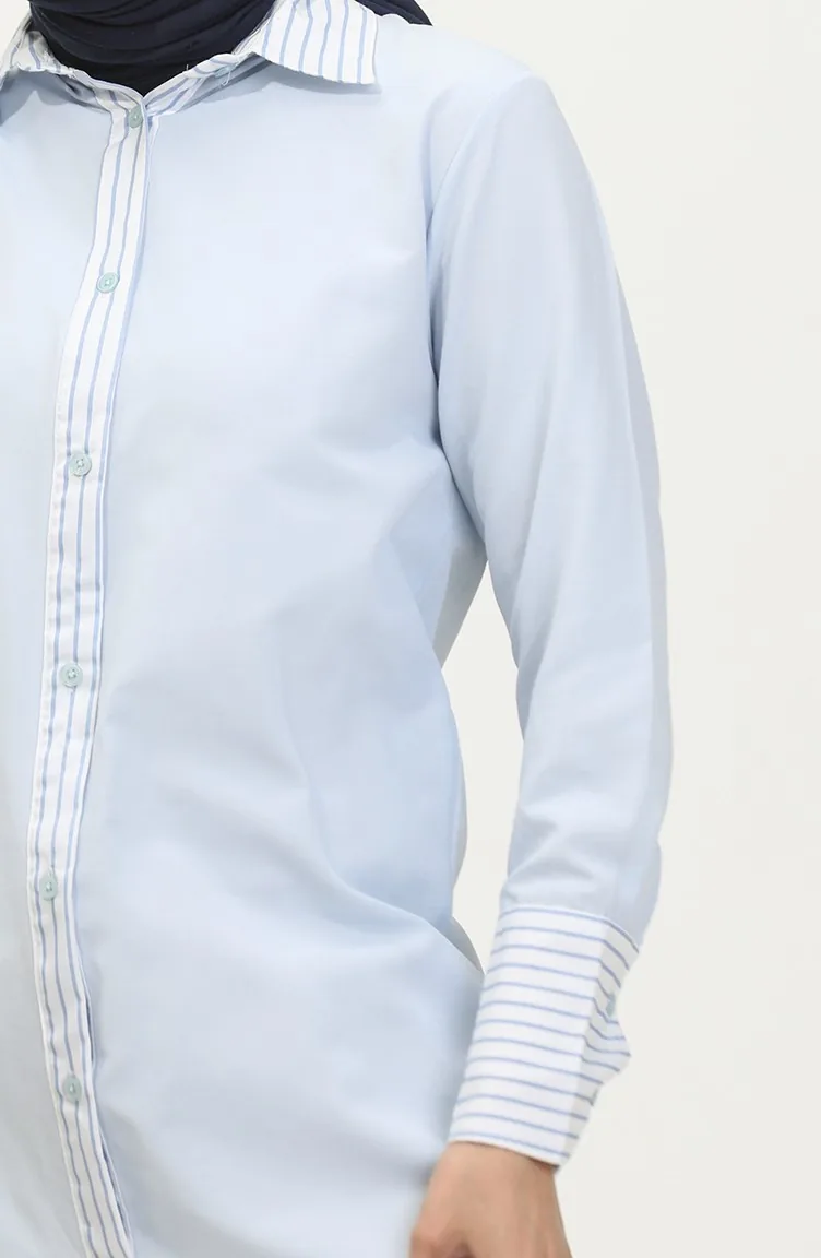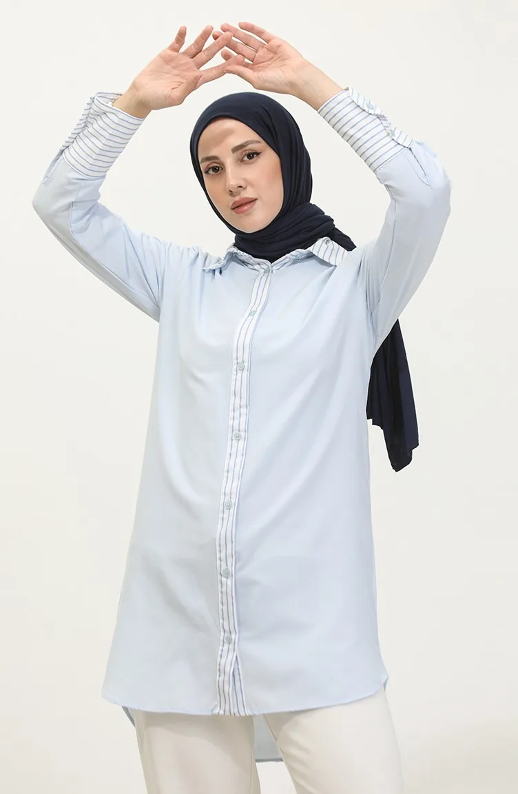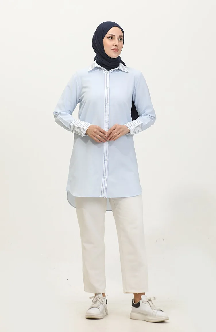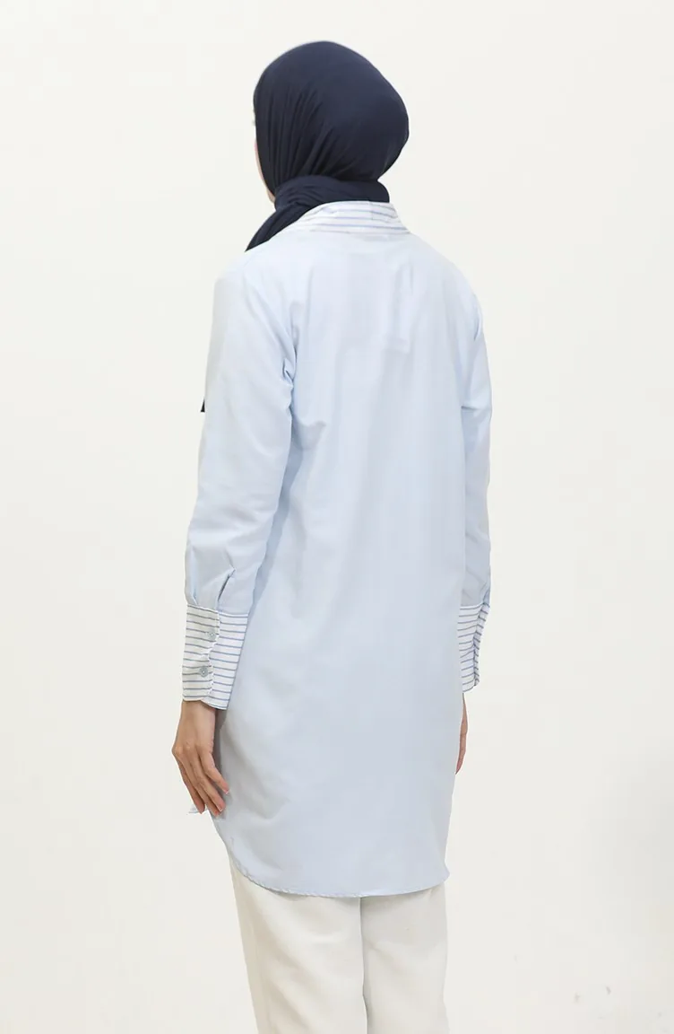 Striped Garnished Tunic 4823-02 Blue 4823-02