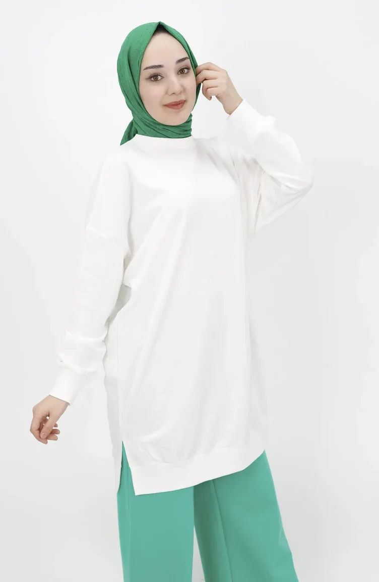 It has a plain appearance. Long sleeve product. The Zero collar is preferred for all types of clothing. Designed for summer use. Woman. The size worn by the model, is the one on the image.