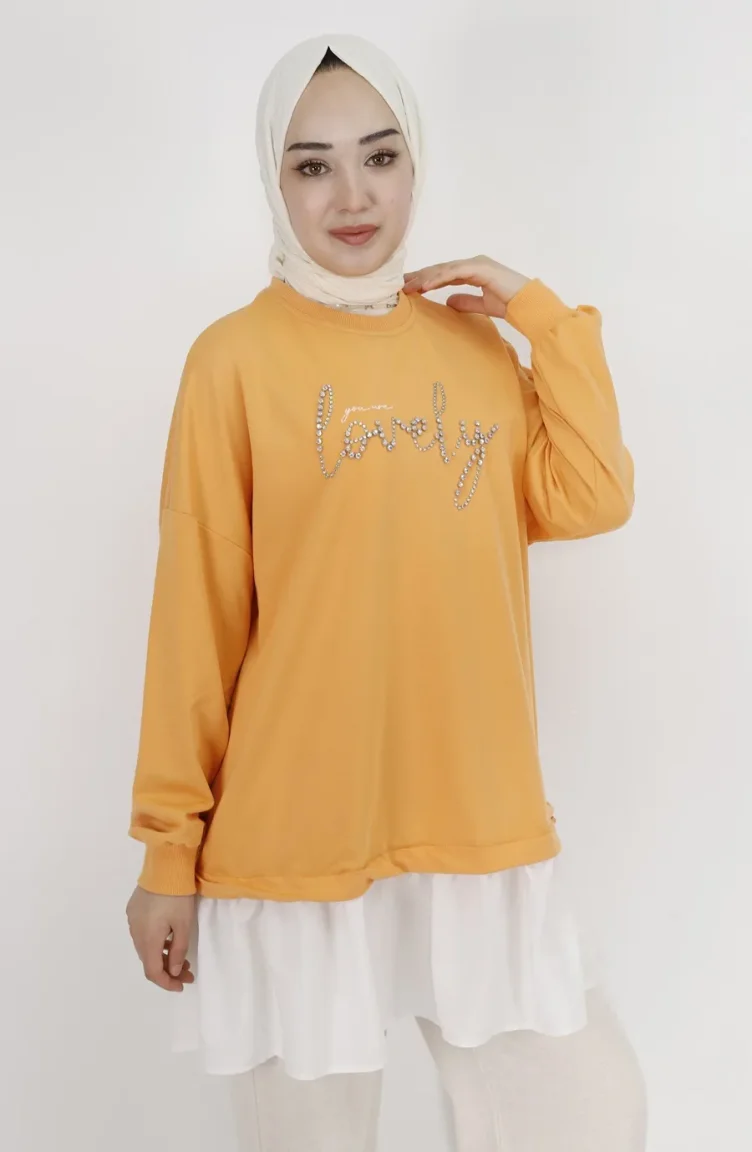 Salmon color is used. It has a plain appearance. The stones used to give a different atmosphere. Long sleeve product. The Zero collar is preferred for all types of clothing. Designed for summer use. Woman.