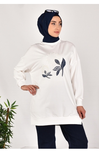 Puane Two Thread Fabric Denim Garnished Sweatshirt 10573-02 Ecru 10573-02