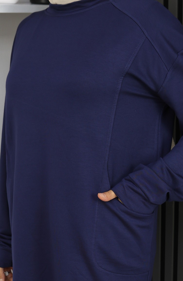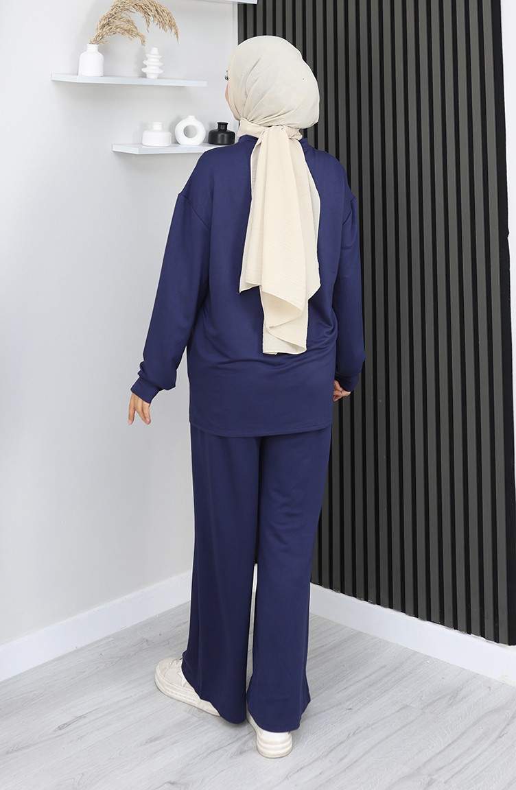 Oysho Fabric Tunic Trousers Two Piece Suit 2163-05 Navy Blue 2163-05