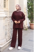 Oysho Fabric Tunic Trousers Two Piece Suit 2191-04 Brown 2191-04