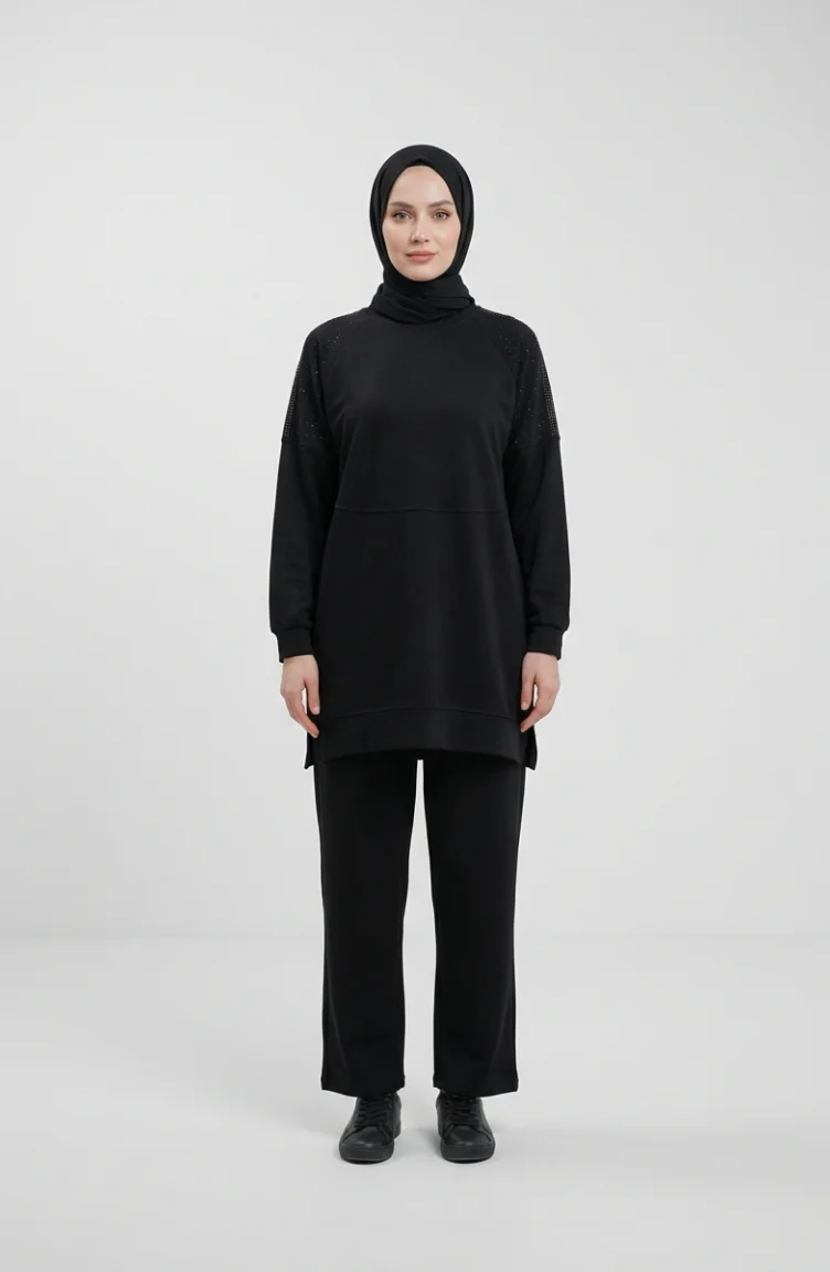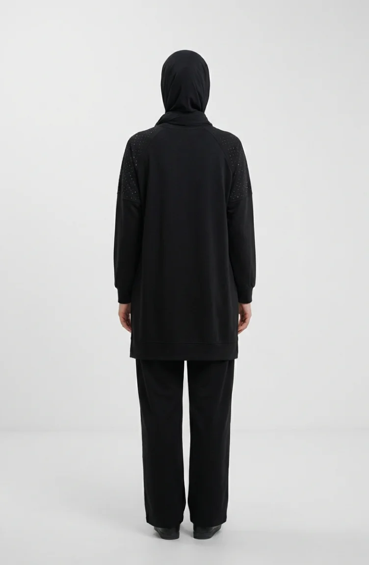 Oysho Fabric Two-Piece Set With Shoulder Stones 0240-03 Black 0240-03