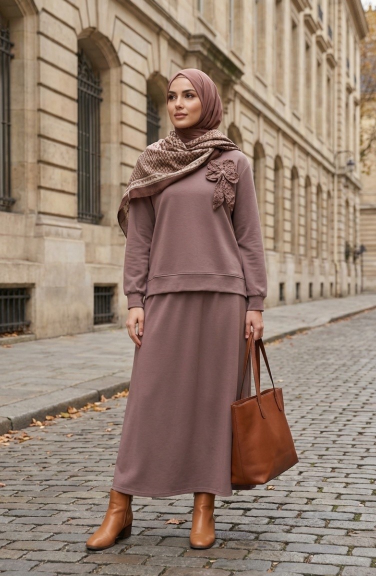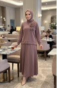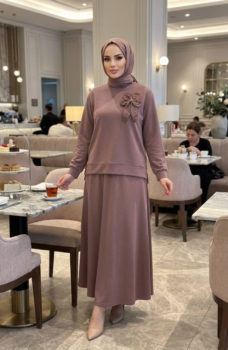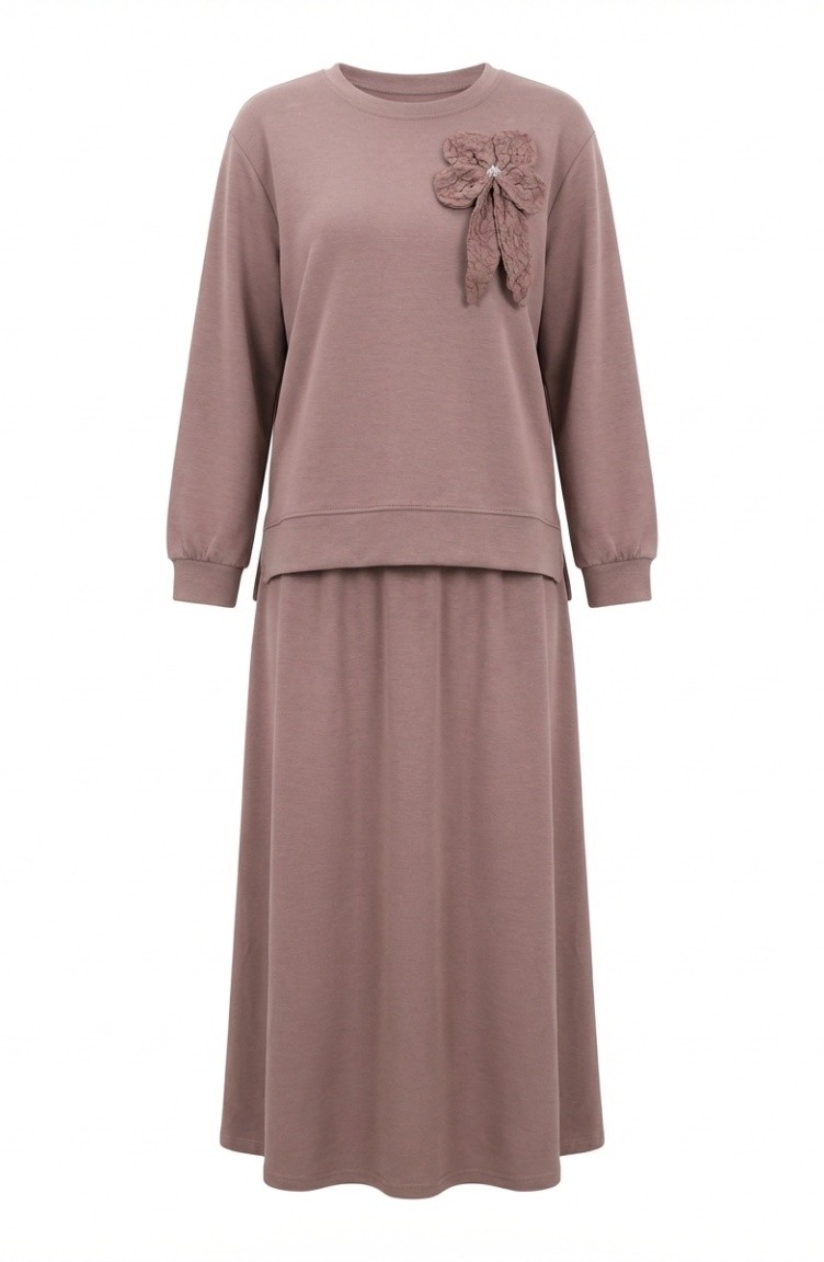 Tunic And Skirt Two-Piece Set With Bow Detail 0237-06 Mink 0237-06